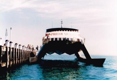 DESCRIPTION2 photographs of the “Spirit of Victoria” hovercraft. Photograph a) shows the hovercraft (with passengers) approaching Rye from Sorrento. Photograph b) shows the hovercraft moored up against the Rye Pier.