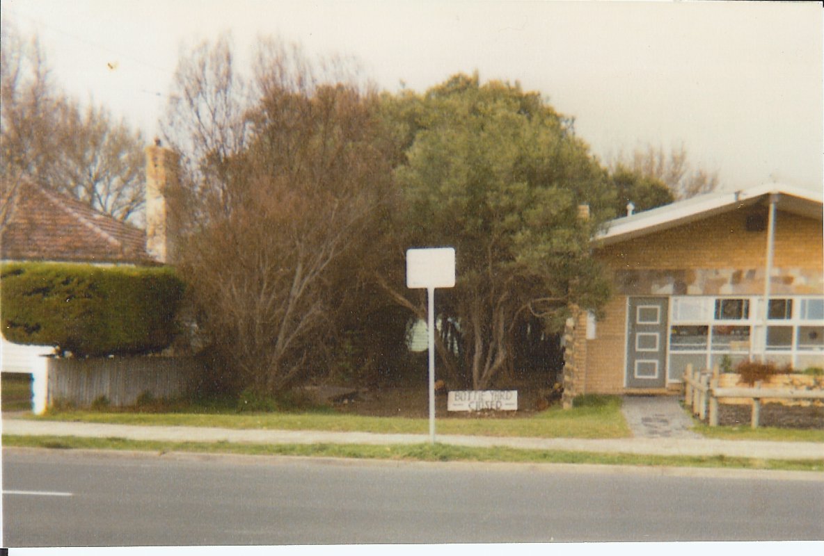 HISTORYThis shows two buildings - (R) Dr Renton’s Surgery - built 1960. Vacant block once used as a bottle collection point by Rye Scouts (Notice says “Closed”). National Bank residence (L).
