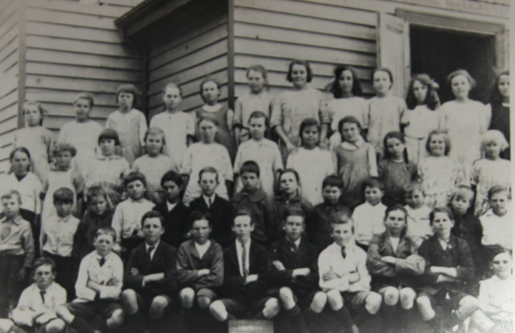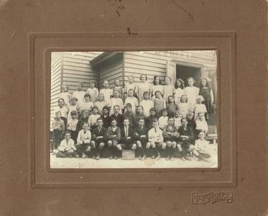HISTORYThis photo was taken in 1923 when the children were using the Mecahnics Institute while the new school was being built. Back row, 4th from right - Nell Arnold.