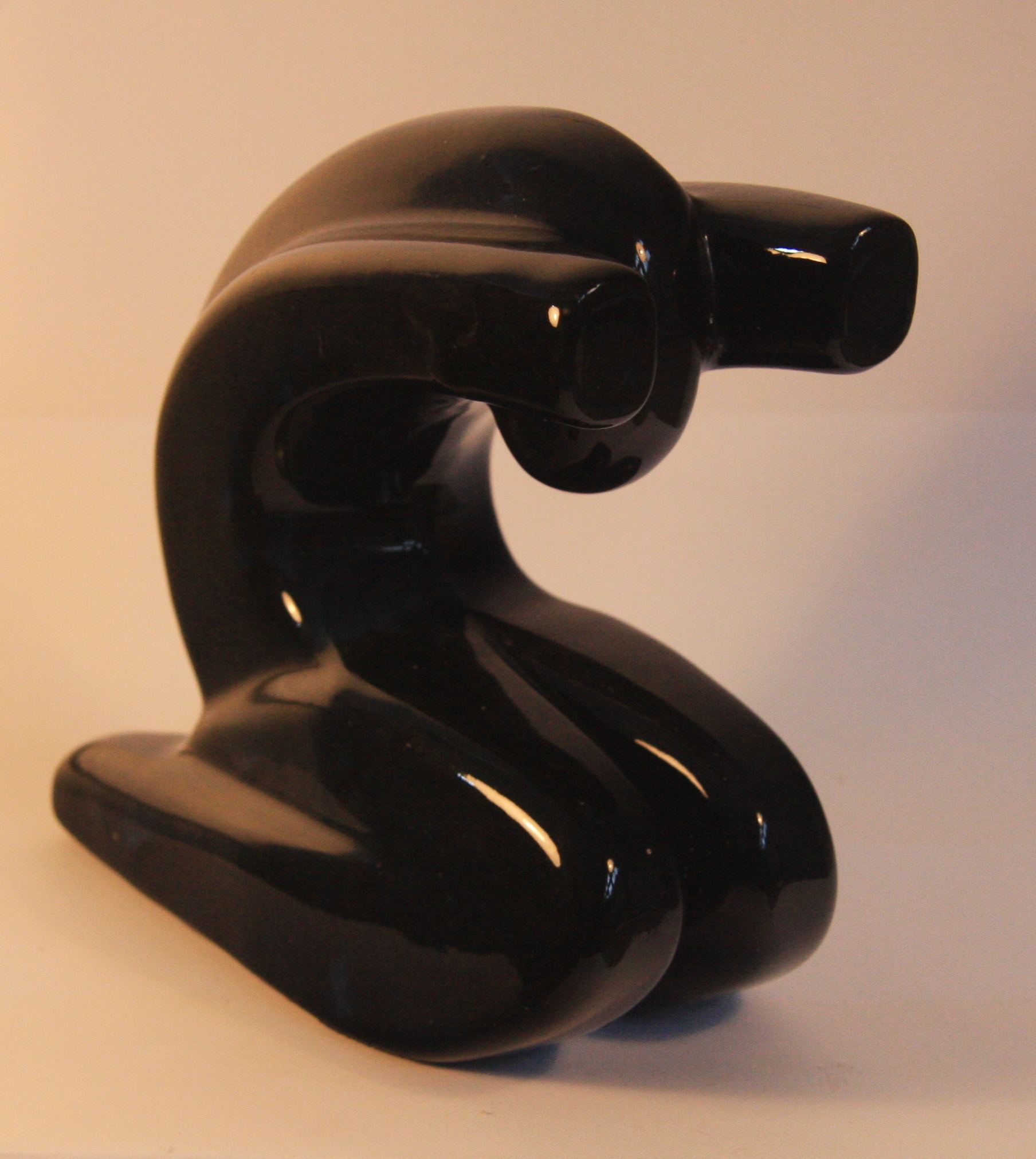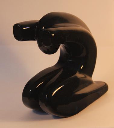 DESCRIPTIONPottery book-ends with black glaze. Identical figures - bent over in kneeling position.