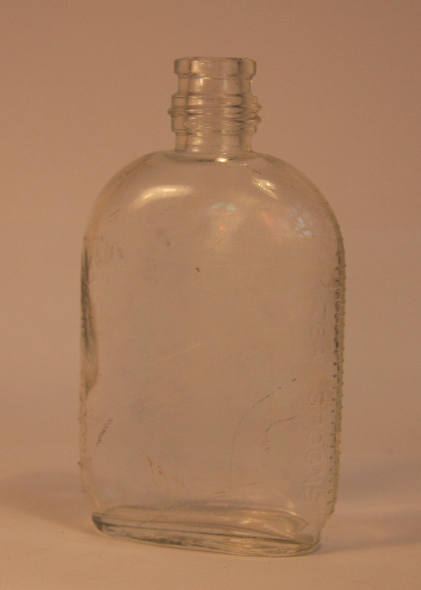 DESCRIPTIONClear glass - original type “Dettol” bottle. Teaspoon and tablespoon graduations on sides.