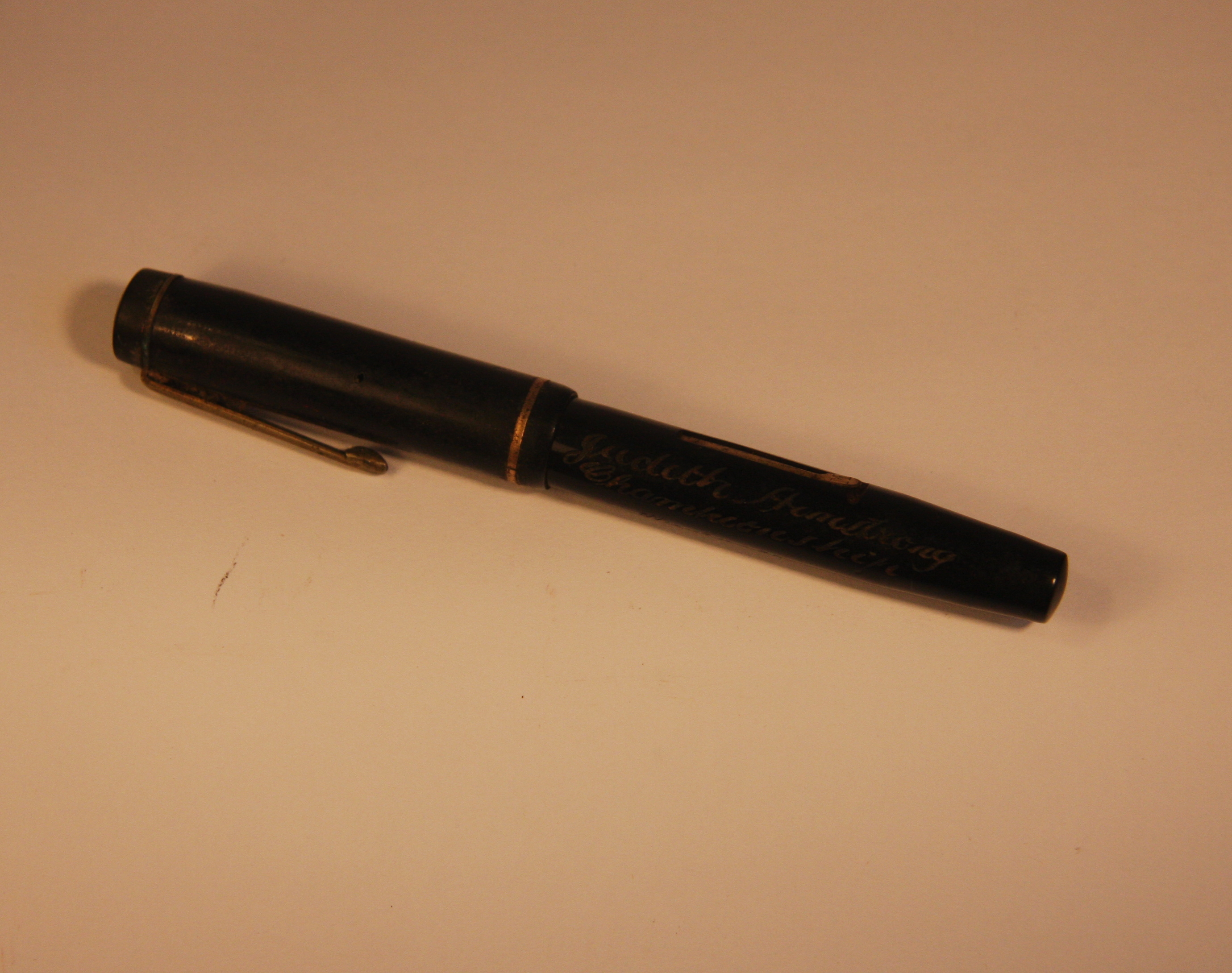 DESCRIPTIONFountain pen, black with gold plated band on cap. Inscription states ”Judith Armstrong Championship”.Peninsula District School; Girls Champion 1948 (Athletics); Judith Armstrong