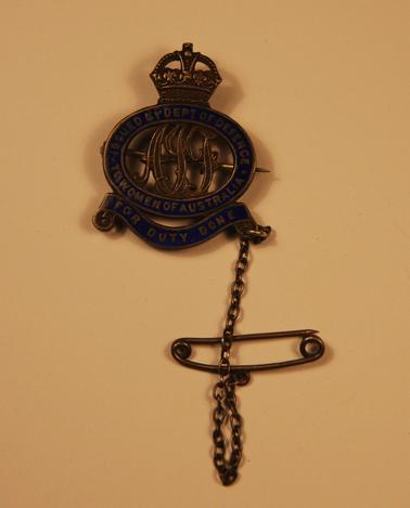 DESCRIPTIONMedal with safety chain - issued by the Department of Defence to women of Australia “for duties done” No. 29016. Crown on top. WW11.