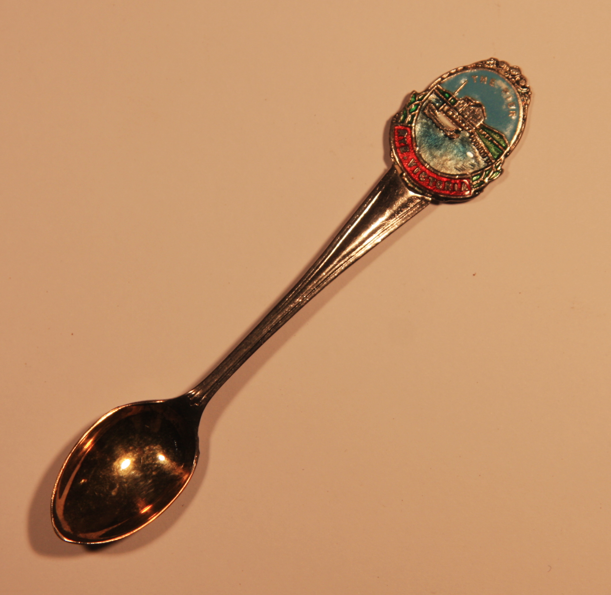 DESCRIPTIONSouvenir teaspoon with enamel multi-colour badge “The Pier. Rye Victoria”