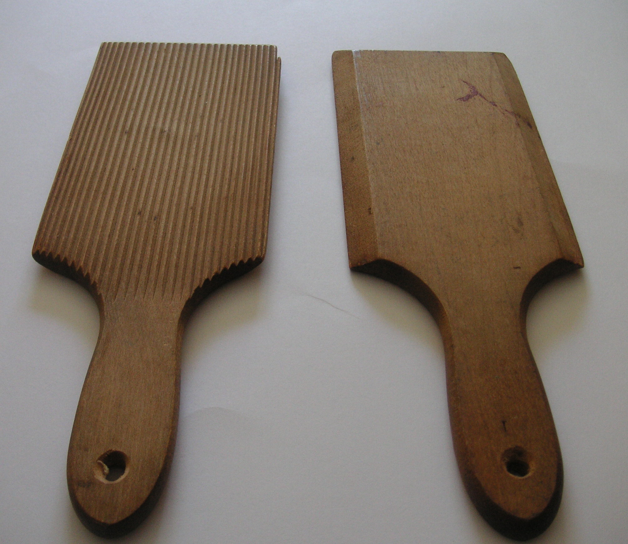 DESCRIPTION2 Wooden butter pats, grooved on one side, rectangular, bevelled edges, with handle.