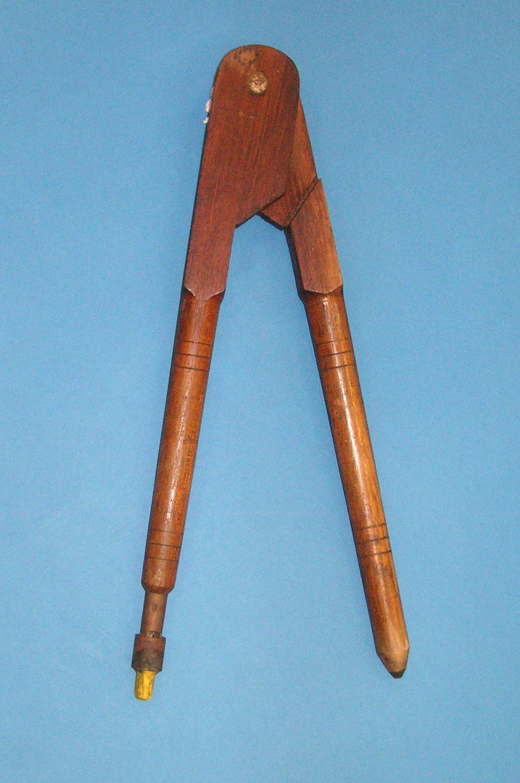 DESCRIPTIONLarge wooden compass, with metal chalk holder and metal butterfly screw at the top. For blackboard use.