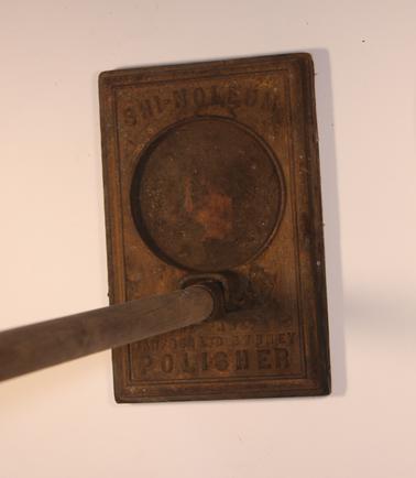 DESCRIPTIONFlat base originally had thick feltex-type polishing mat. Metal plate inscribed “Shi-Noleum” at top”24373 the Paget Manfg. Col Ltd Sydney Polisher” at bottom.
