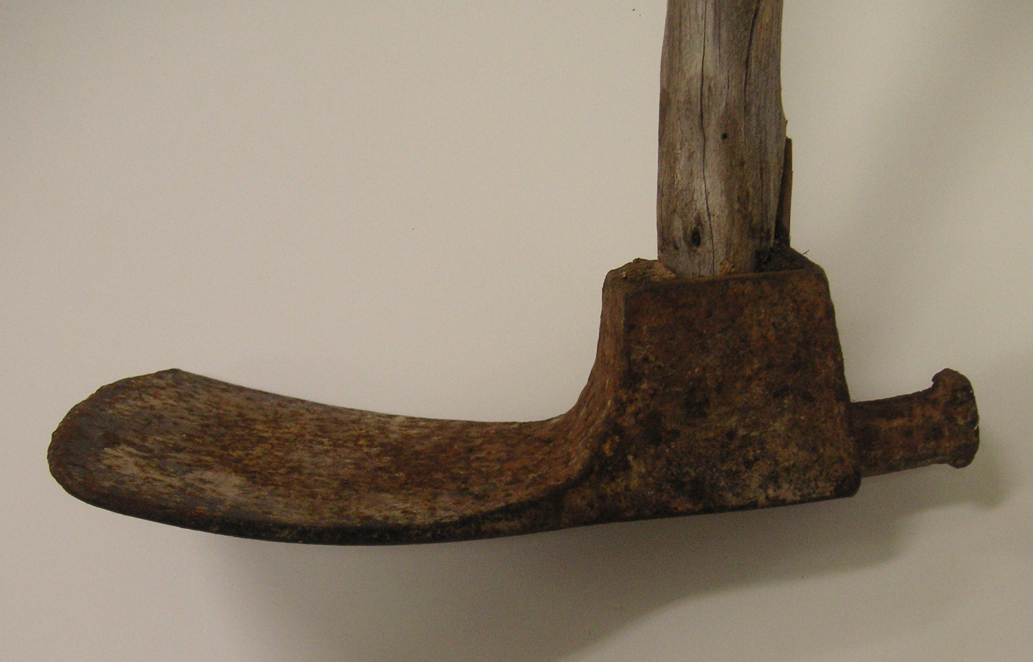 DESCRIPTIONTea-tree handle. Forged metal head with blade at one end and hammer at the other.