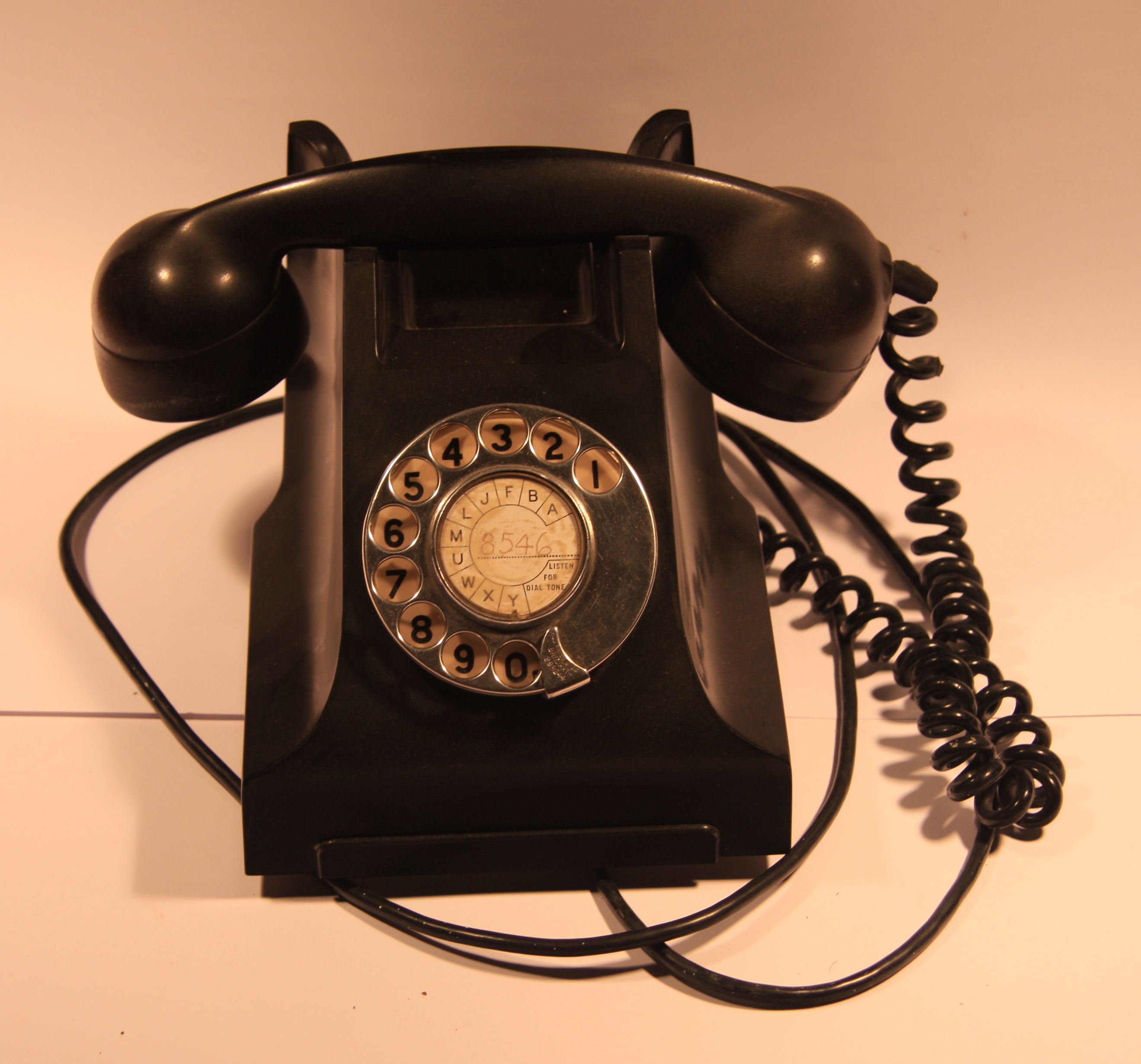 DESCRIPTIONHeavy black telephone. Rotary dial. Standard in Australian homes from 1939. Phone No: 8546