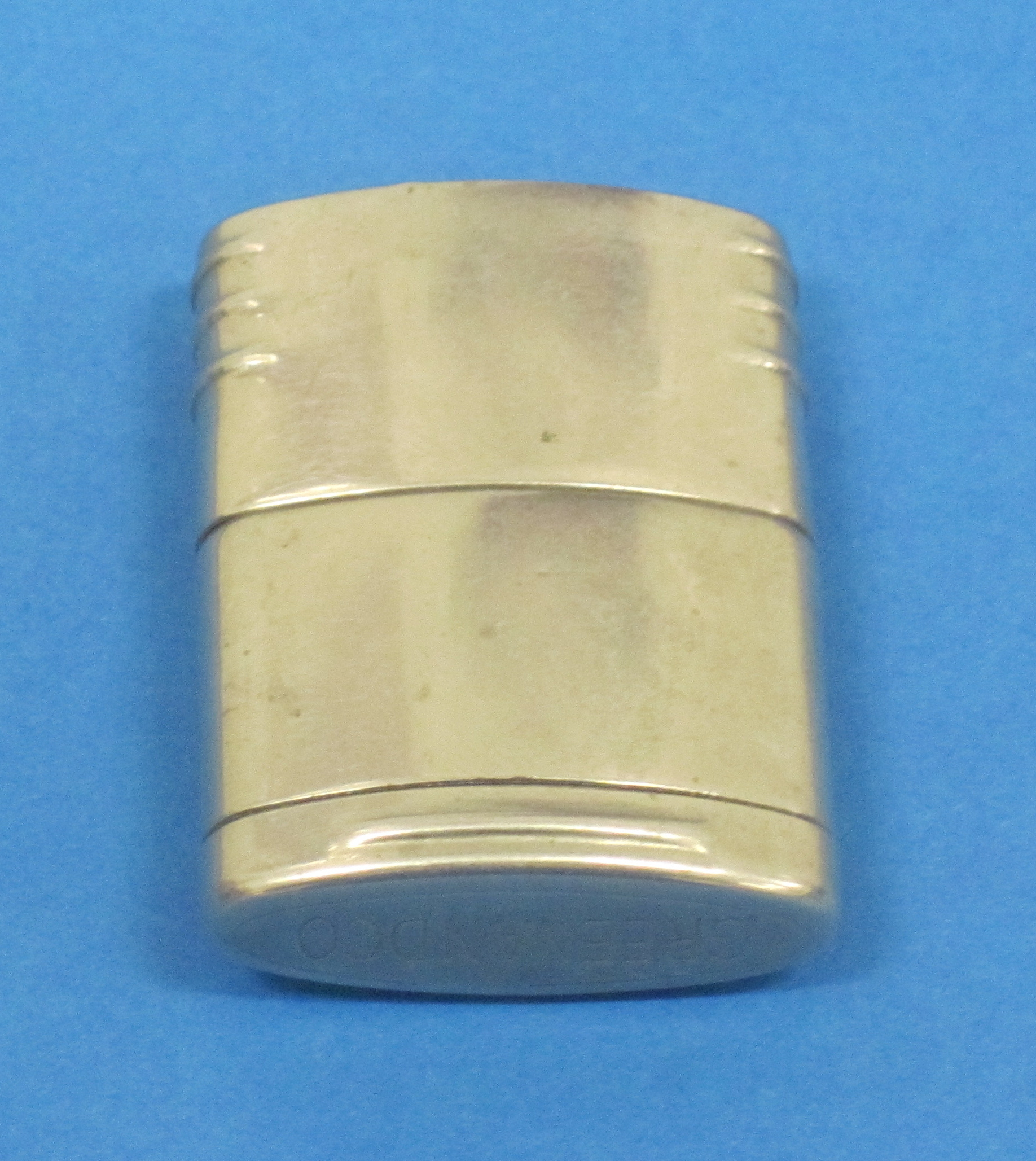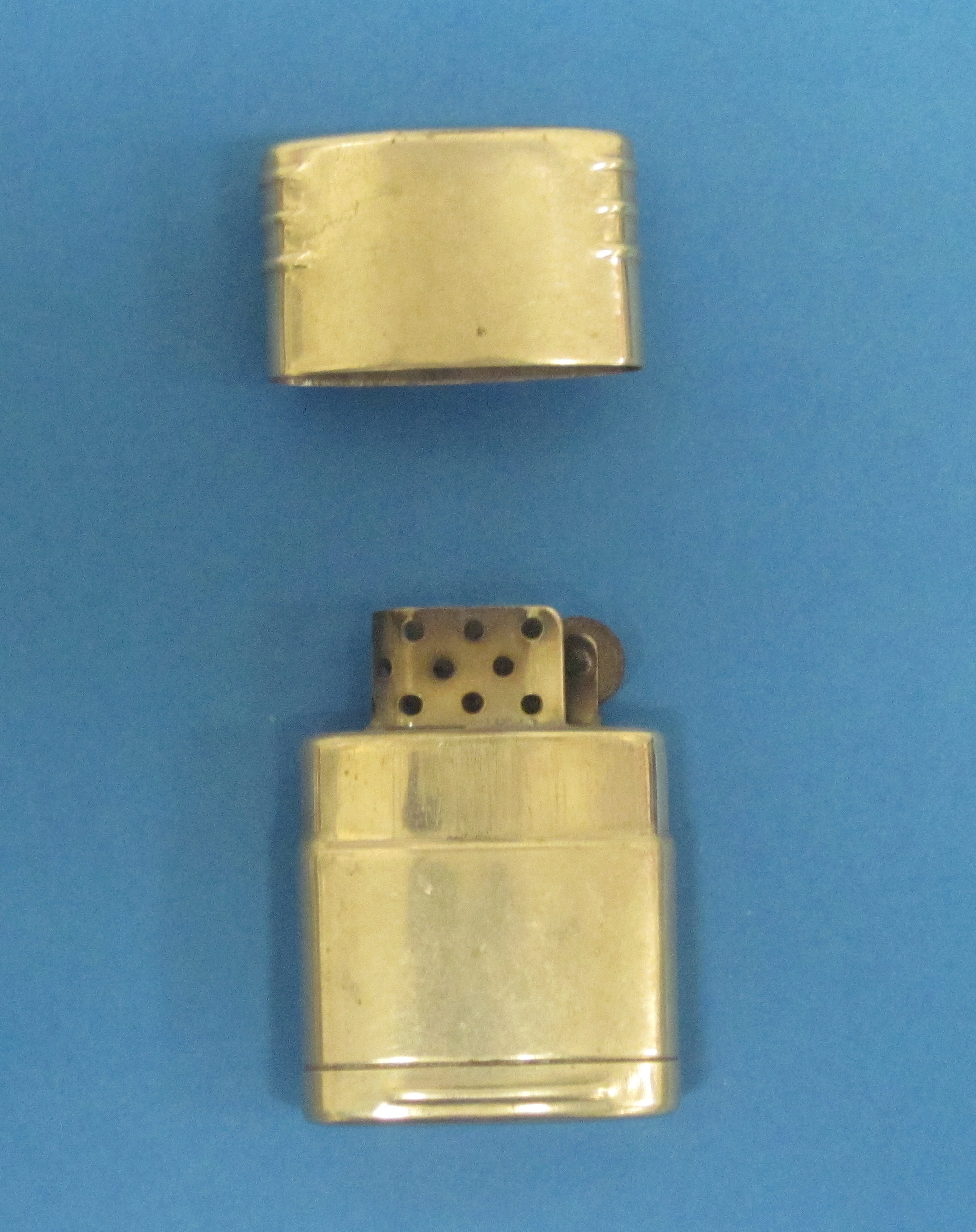 DESCRIPTIONDepartment of Defence issue Mark 111 cigarette lighter with separate lid and impressed maker’s details stamped on base - “GREENANDCO” in an oval. Flint with lock.