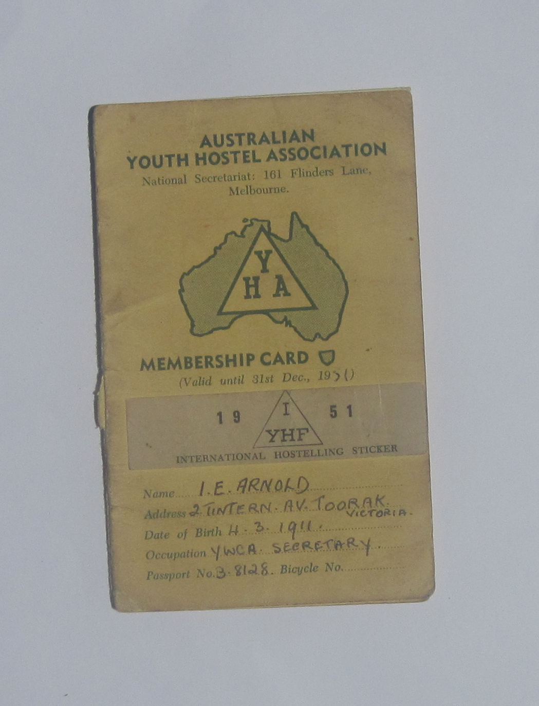 HISTORYMembership card belonging to Nell Arnold on trip to UK and Europe 1951-53. Membership No. 1235. Nell Arnold was a former pupil of Rye Primary School in the 1920s and a long term resident of Rye.