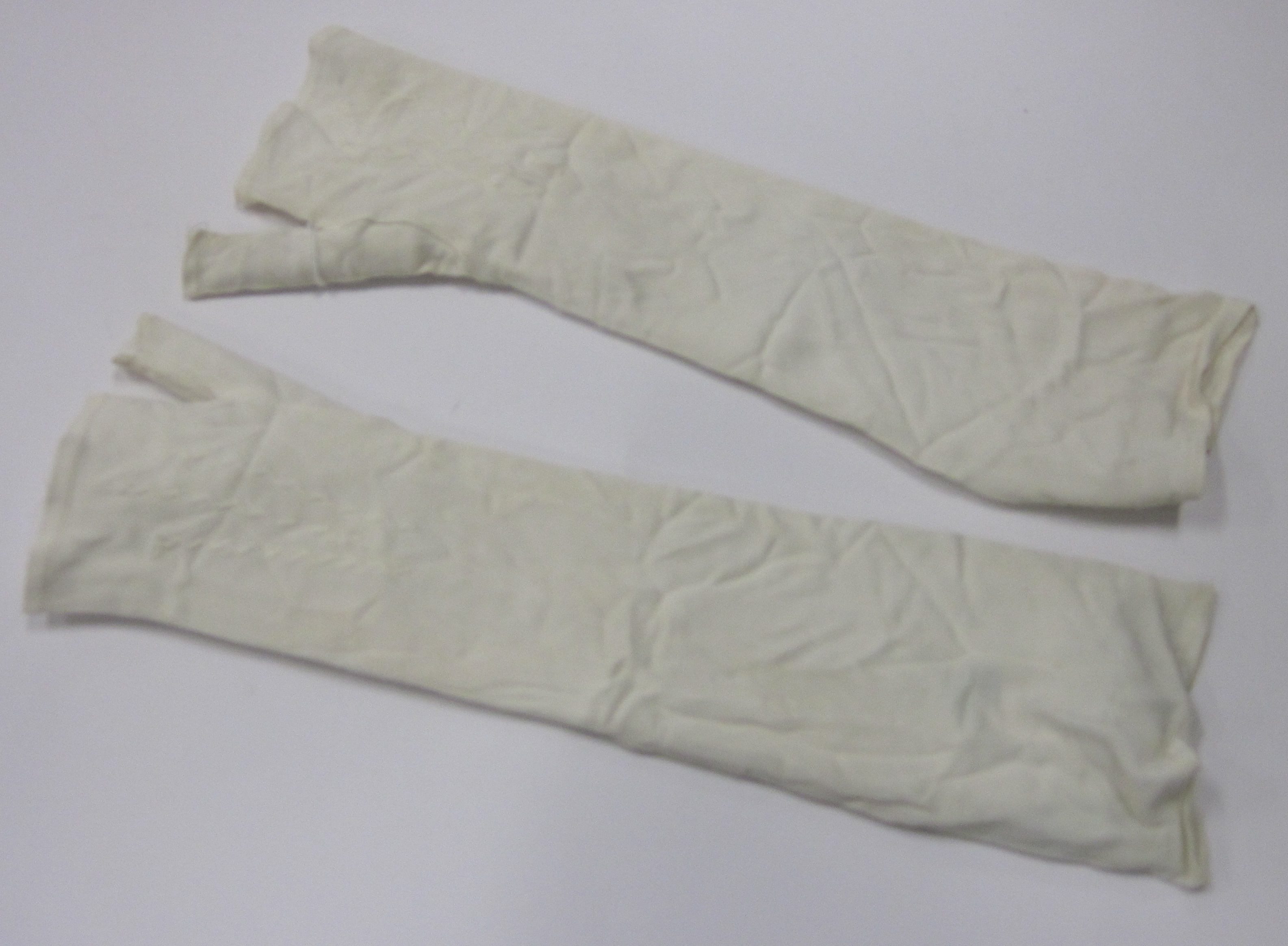 DESCRIPTIONLong white mittens for evening wear - thumb only, no fingers.