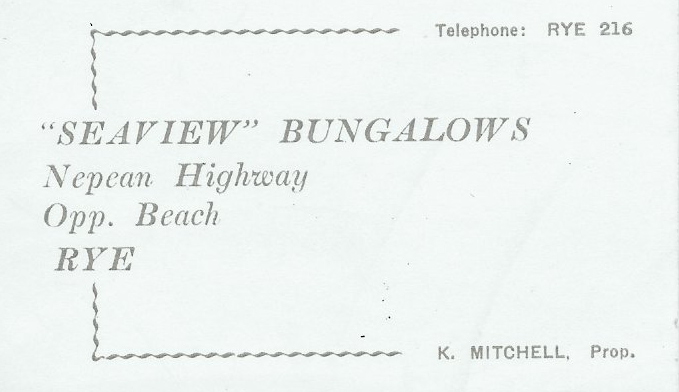 DESCRIPTION“Seaview” Bungalows, Nepean Highway, Opp. Beach, RYE. K. Mitchell, Prop.