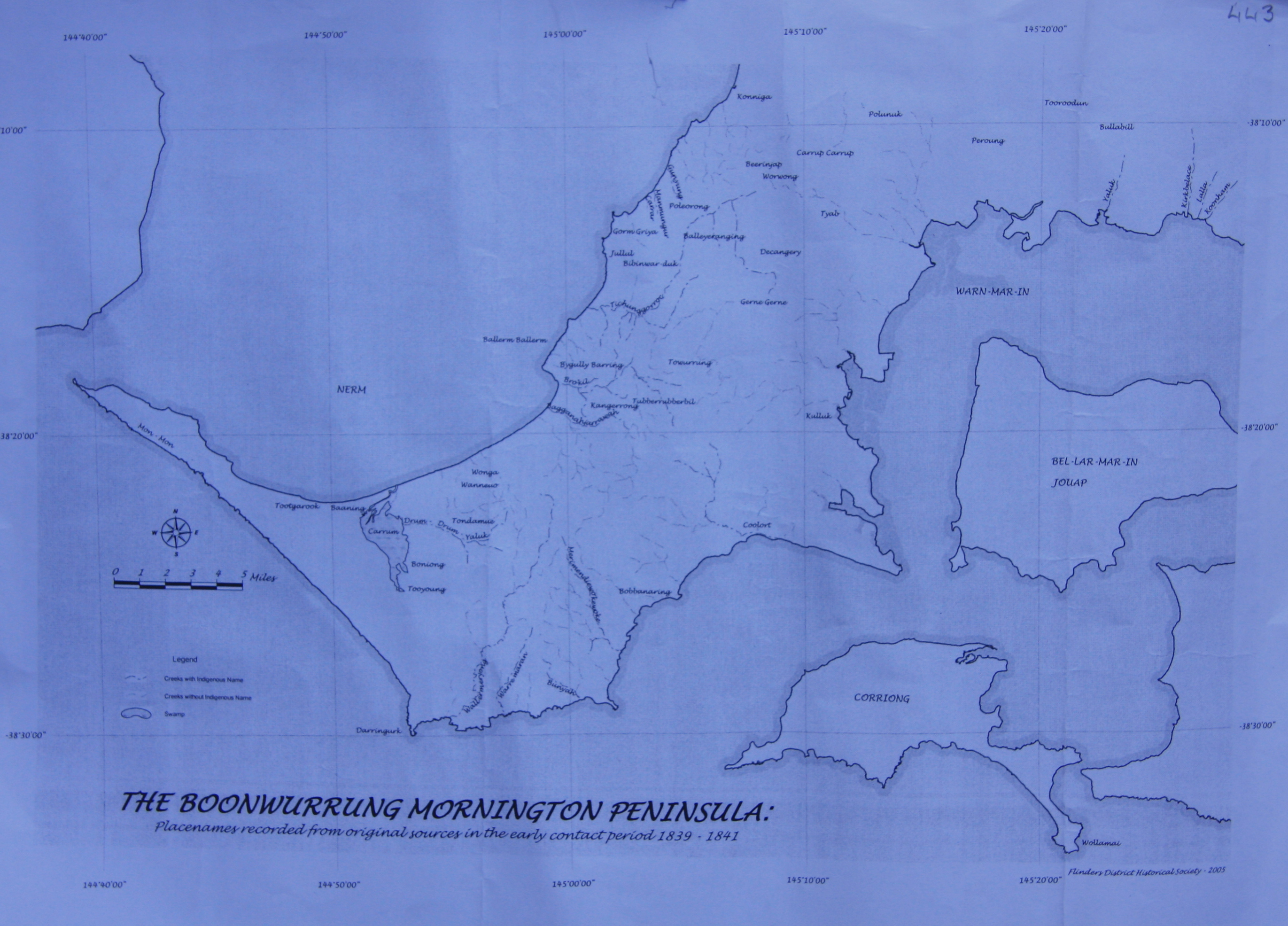 DESCRIPTIONMap of land features of Peninsula - Boonwurrung, Mornington Peninsula + typewritten description