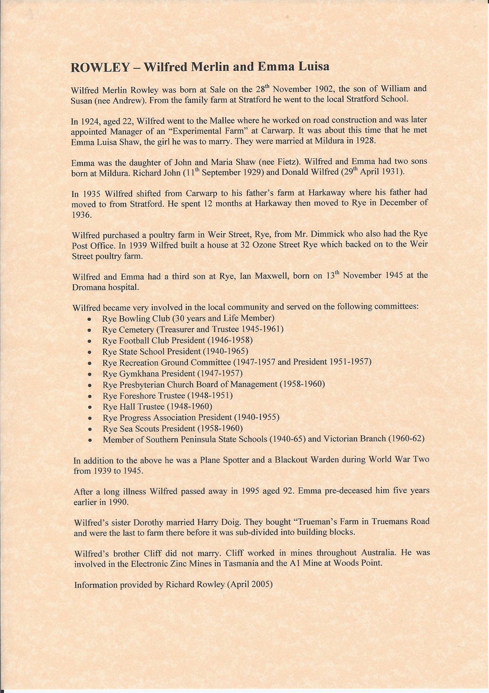 History of Wilfred Merlin Rowley and Emma Luisa Rowley