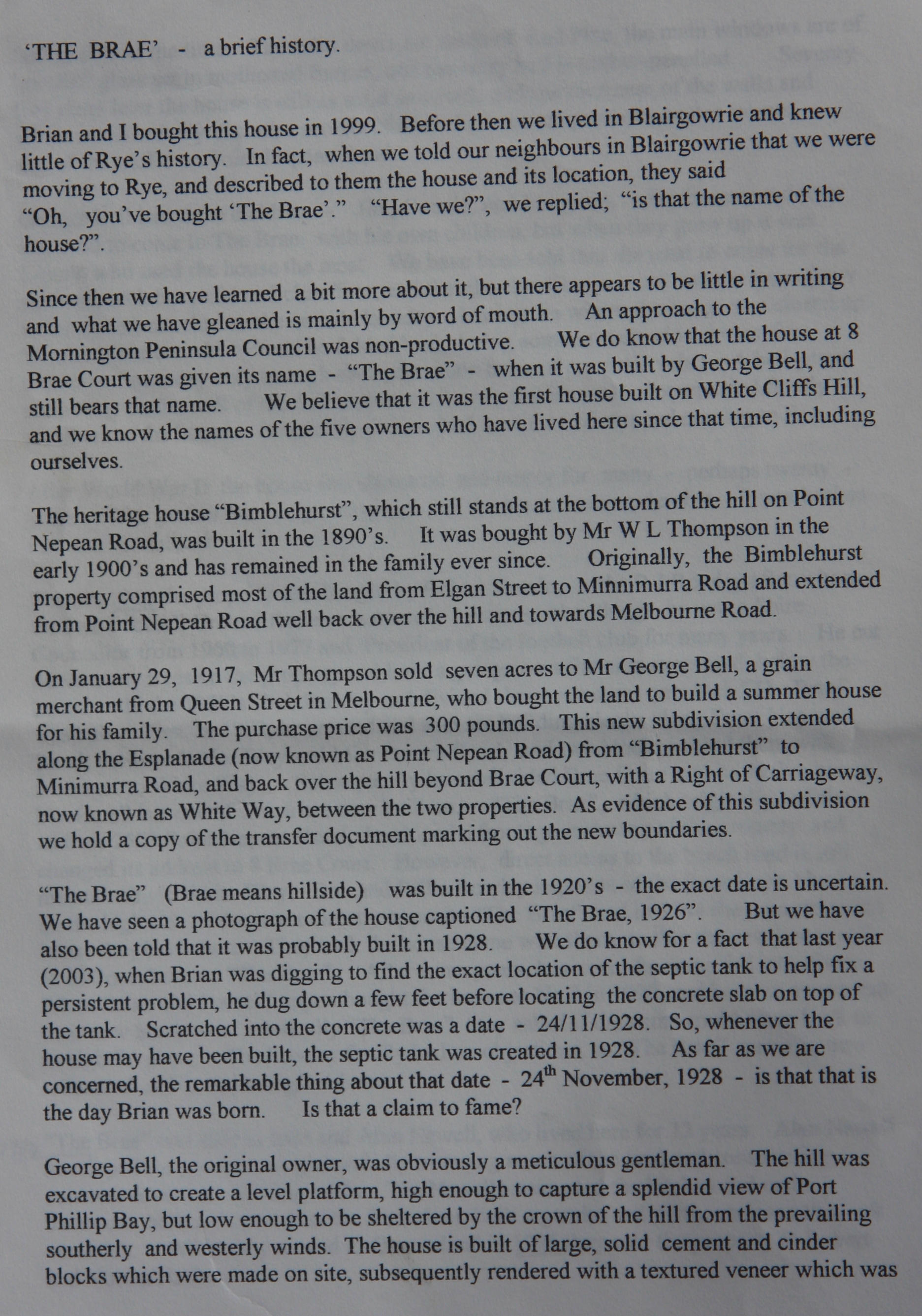 DESCRIPTIONHistory of “The Brae” 8 Brae Court, Rye