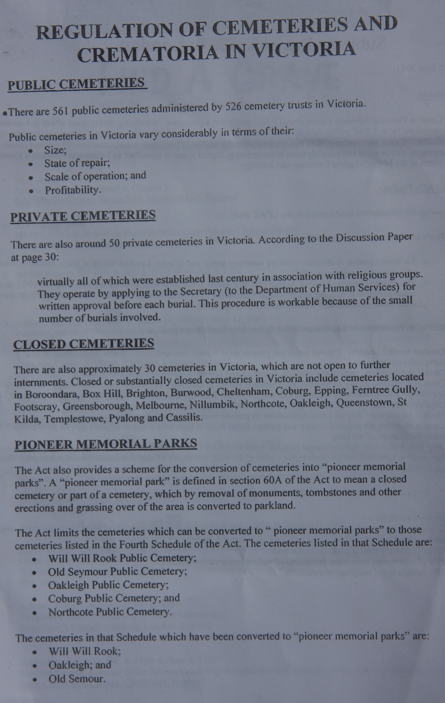 Regulation of Cemeteries and Crematoria in Victoria and notes on London Cemeteries
