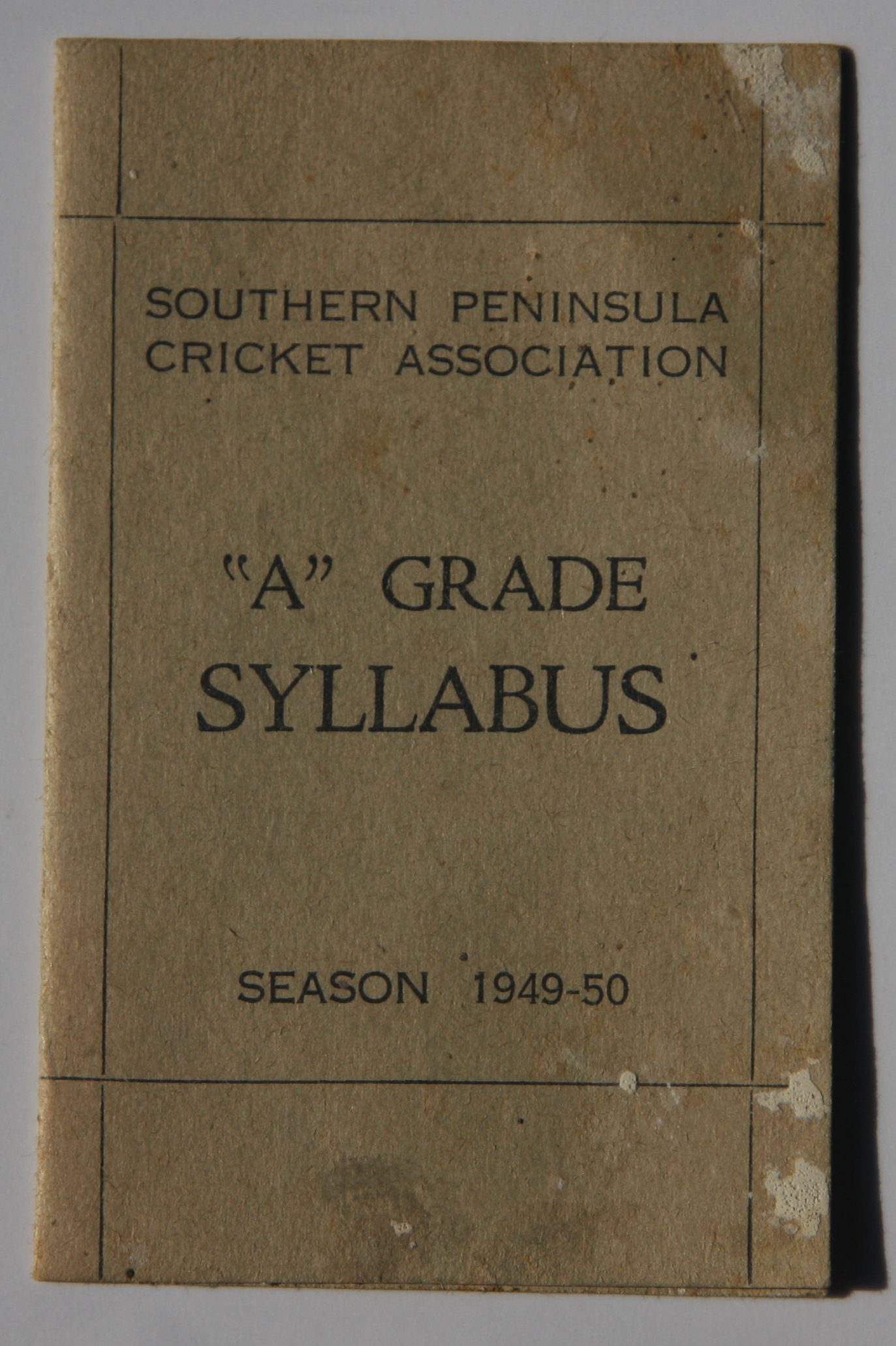 Southern Peninsula Cricket Assocn. "A" Grade Syllabus 1949-50