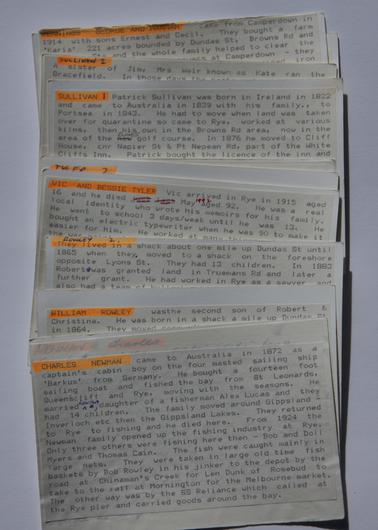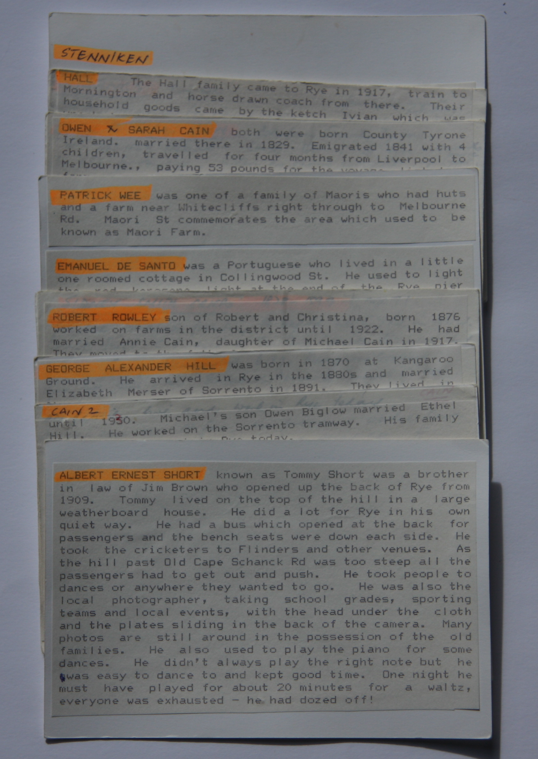 DESCRIPTIONCards used during Rye Cemetery Walk with story of the following: Hall, Cain, Tyler, Stenniken, Newman, Short, Rowley, Sullivan, Jennings, Moat, Wee, Desanto, Hill