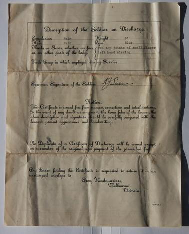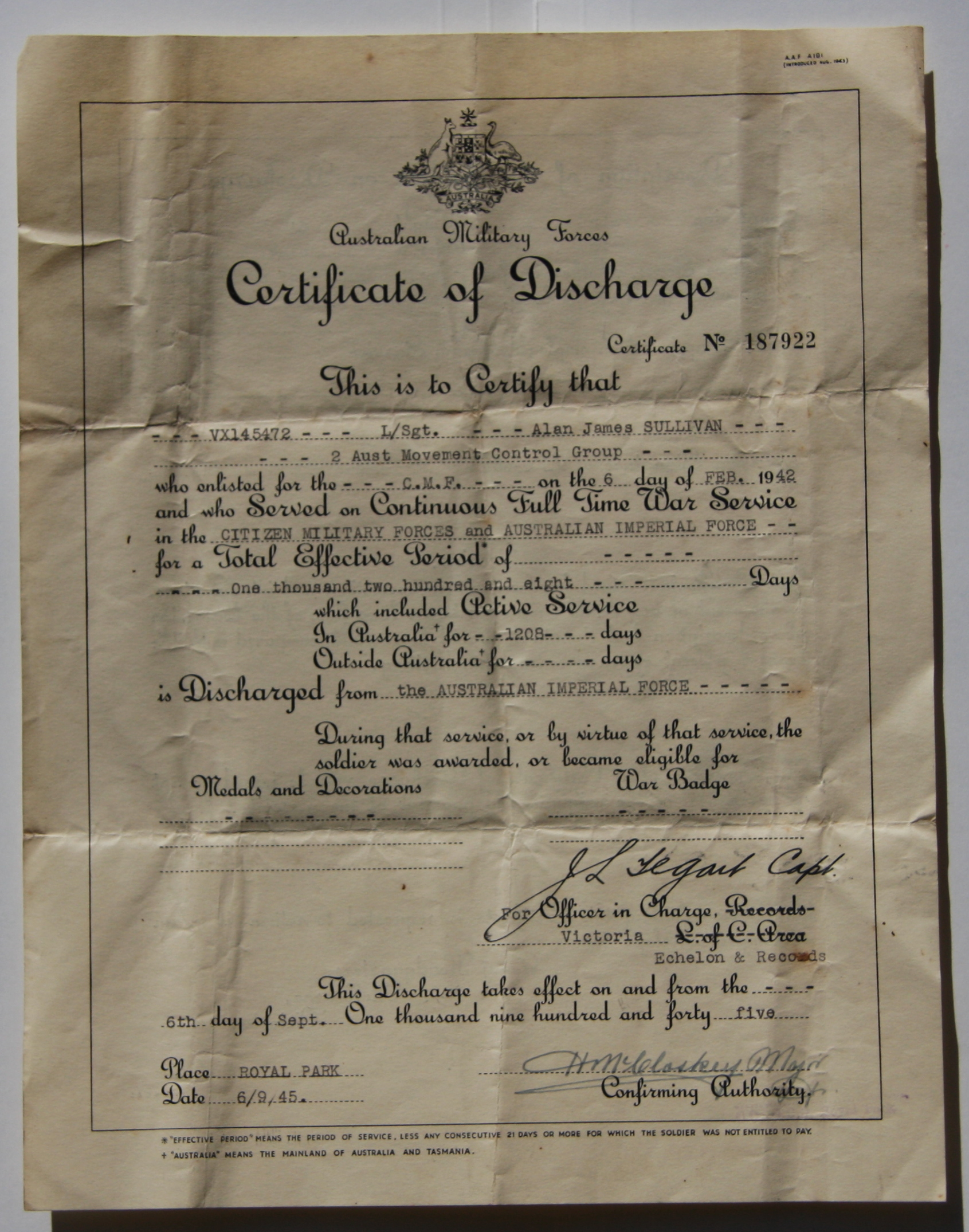 DESCRIPTIONCertificate of Discharge AMF - Alan James Sullivan