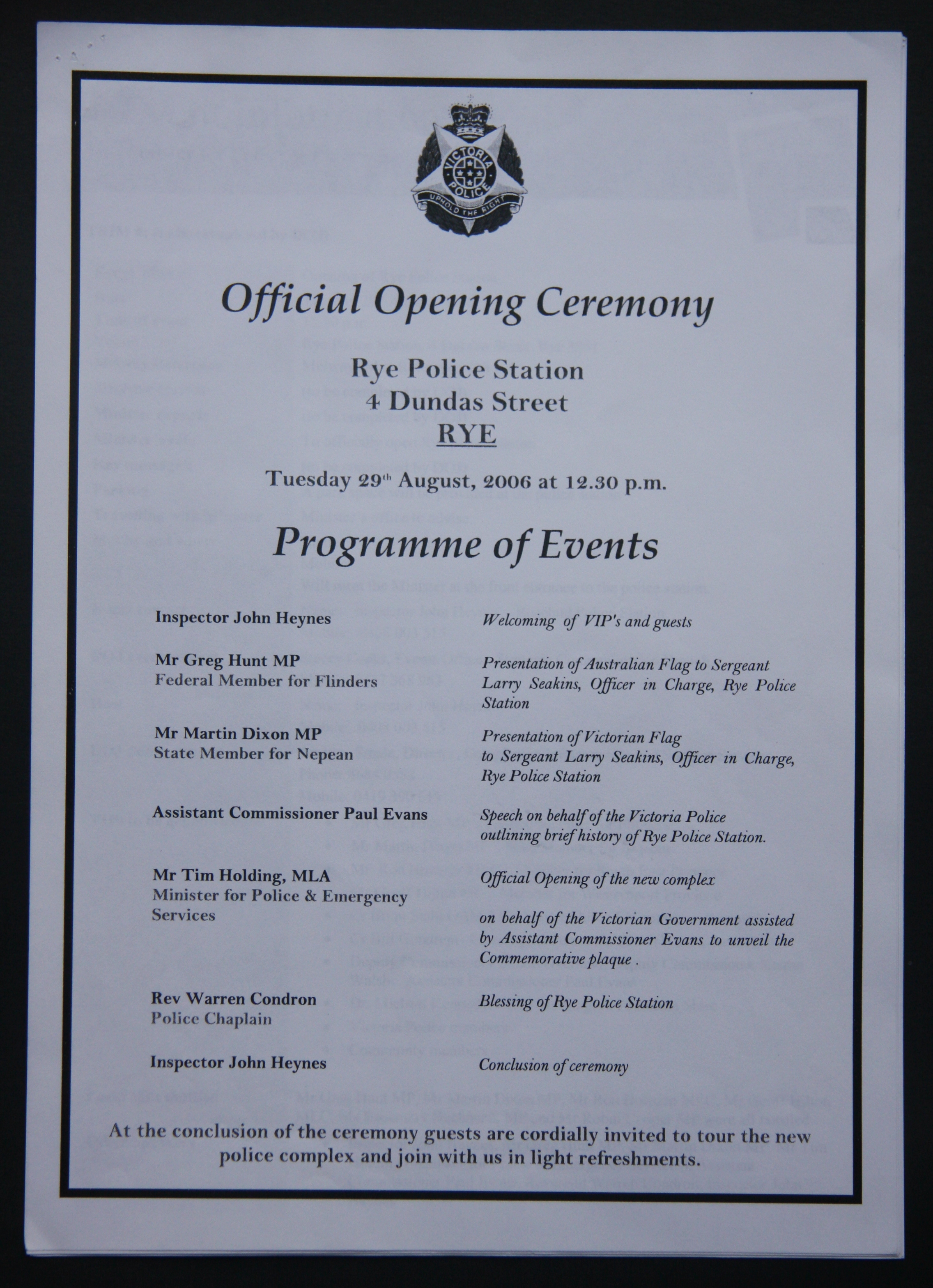 HISTORYOpening of new Rye Police Station, 29 August 2006