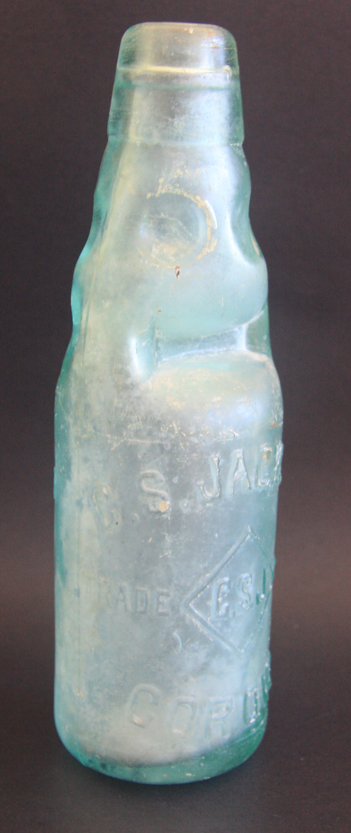 HISTORYMade for carbonated drinks. Invented by Hyram Codd, England 1872. Clear glass marble pushes up against rubber seal to keep liquid/bubbles in.