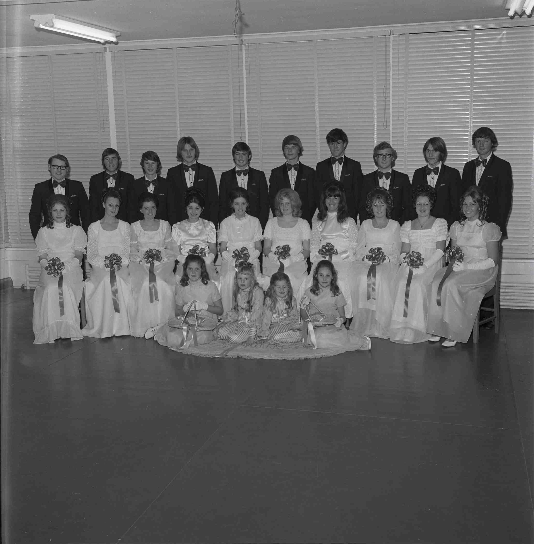 A group of young people at a Debutante Presentation Ball, which was arranged by the Guild of St Mark’s Church of England and held in Balnarring Hall. The debutantes and their partners were (left to right)