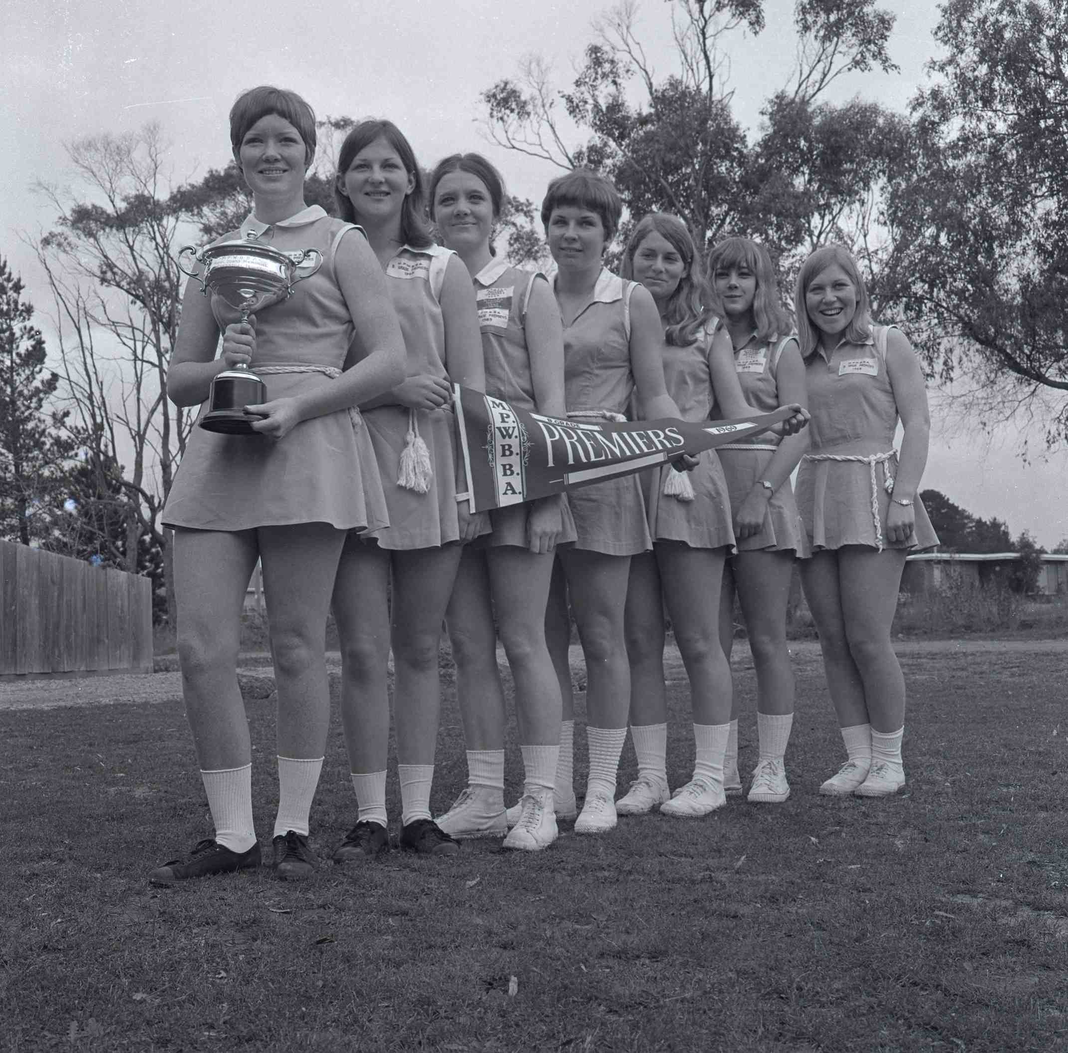 Hastings Women’s Basket Ball Associetion team Mornington Peninsula Premirs.with a winners’ trophy.