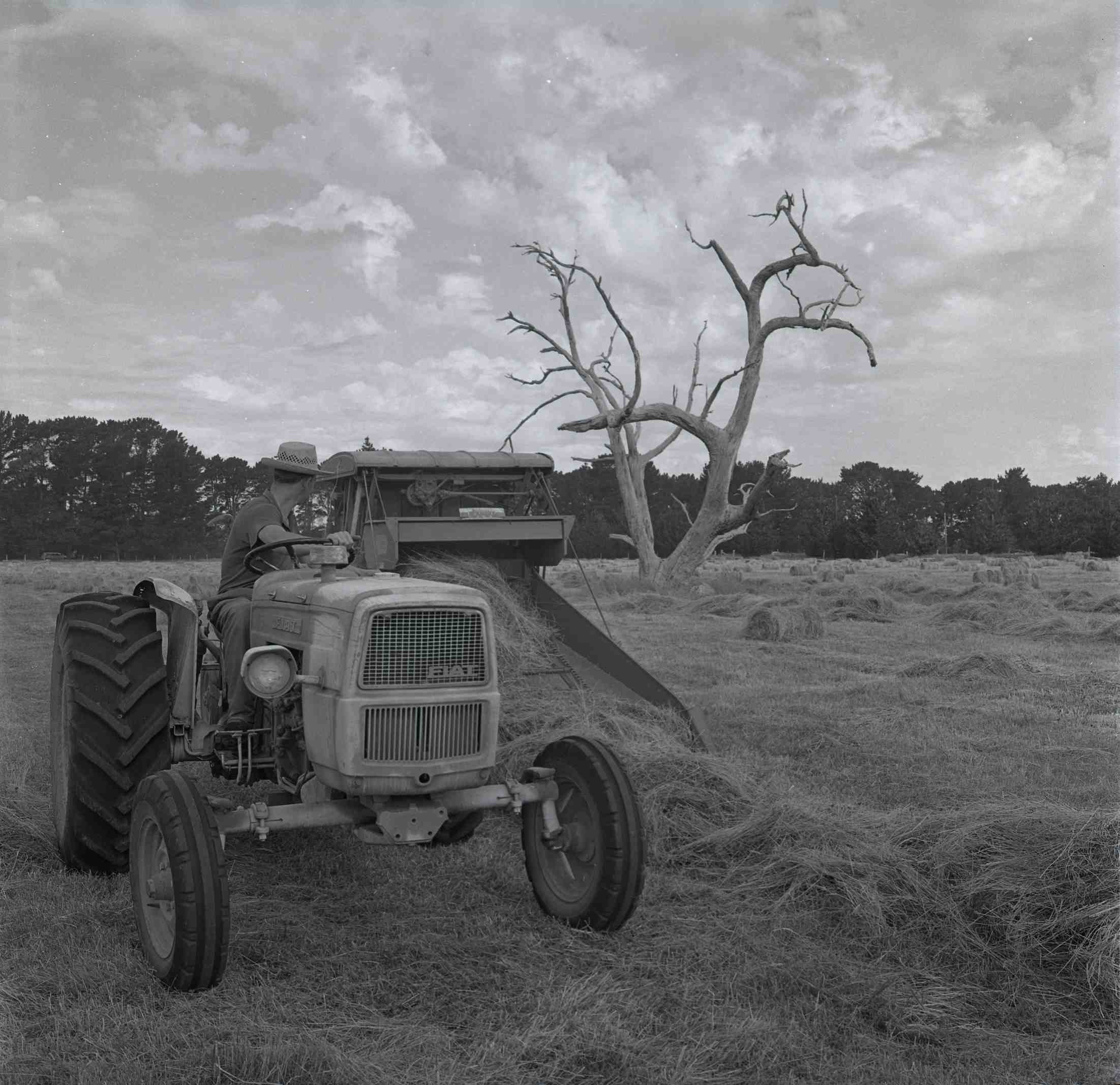 Tyabb Farmer on Stumpy Gully Road cutting Hay.