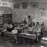 Somers. Grade 5/6 in their classroom with their teacher Lindsay Booker. c.1975