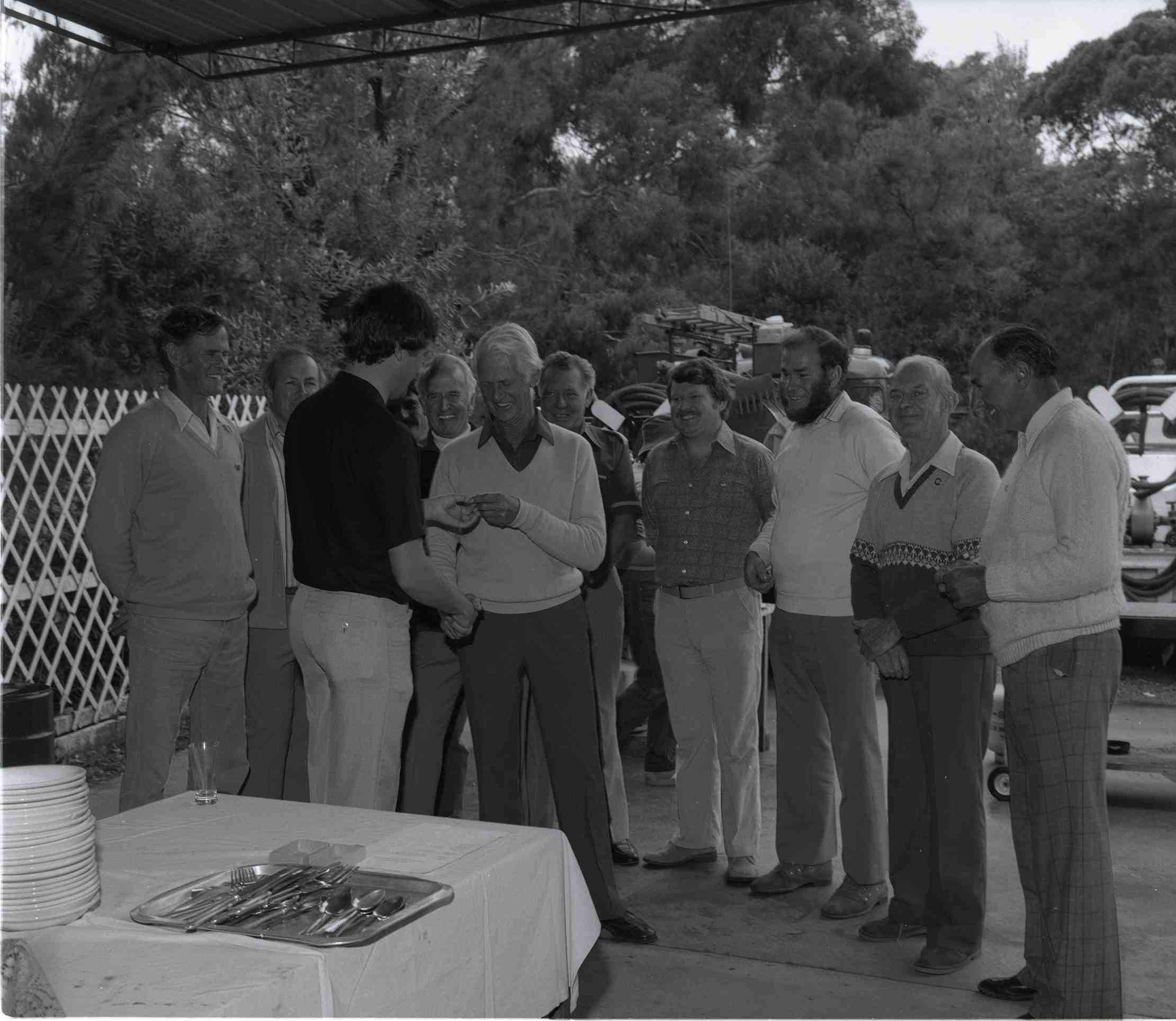 HISTORYSomers Fire Brigade Long Service Awards being presented by Ken Bodle with other waiting their awards. L to R Ray Stoone, Dave Pullen, Stan Byrne, Ron Fitzgerald, Rick Bailey, Ernie Pope, Gordon Frost, Bruce Molloy.