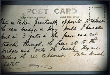 HISTORYSomers, 1920s. Mairs Beach. Copied by Bruce Bennett from the album of T. Mairs when he was collecting information for compilation of a history of Somers. This is one of a series of postcards written by Ron Stone to the Mairs family. The postcards show different scenes of Mair’s Beach, soon to be subdivided and re-named ‘Palm Beach. Mairs were landholders before subdivision for housing.