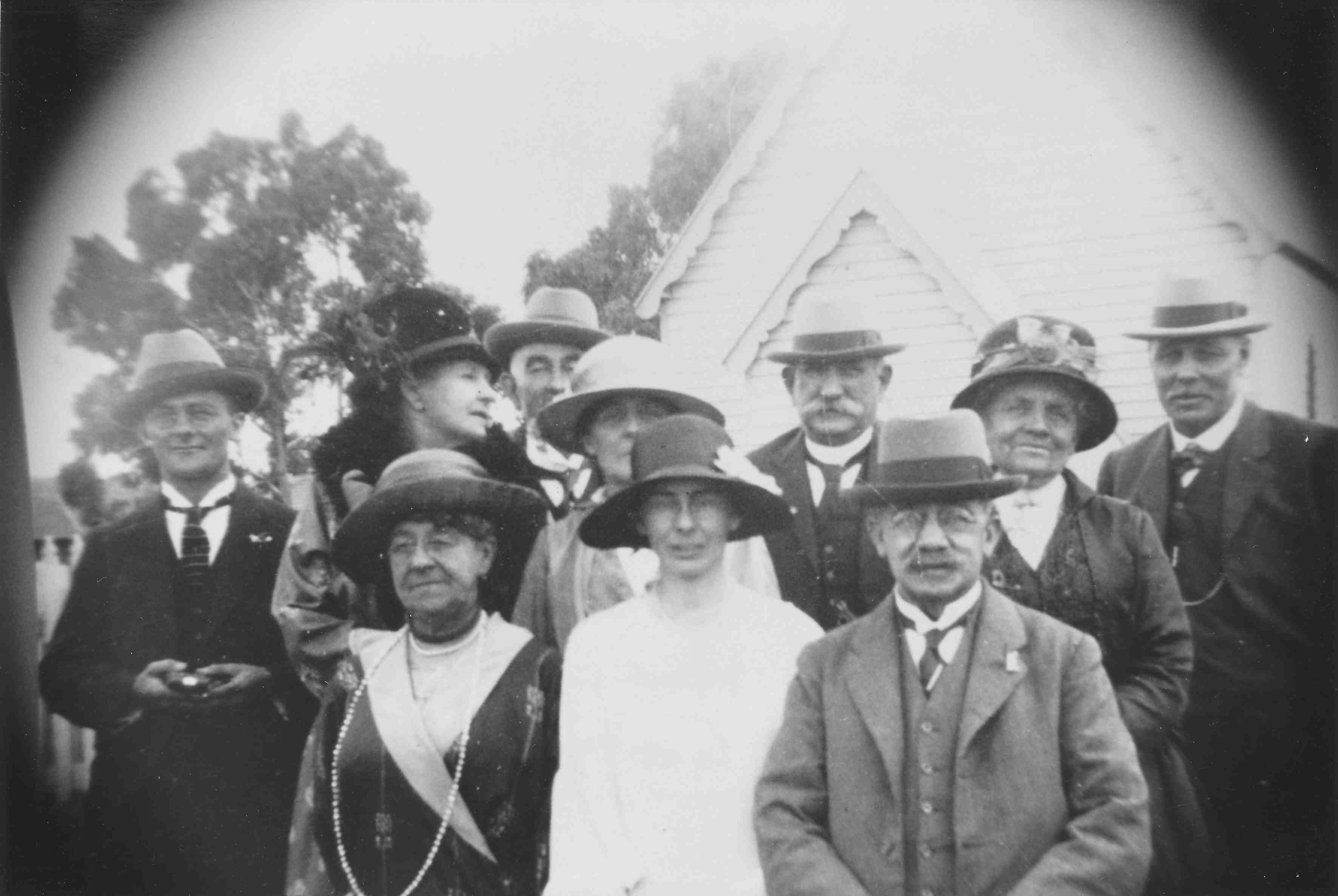 HISTORYBittern no date. Wedding photo of Graham Myer at St Mary’s Catholic Church, Hastings. Names of people on back of photo.