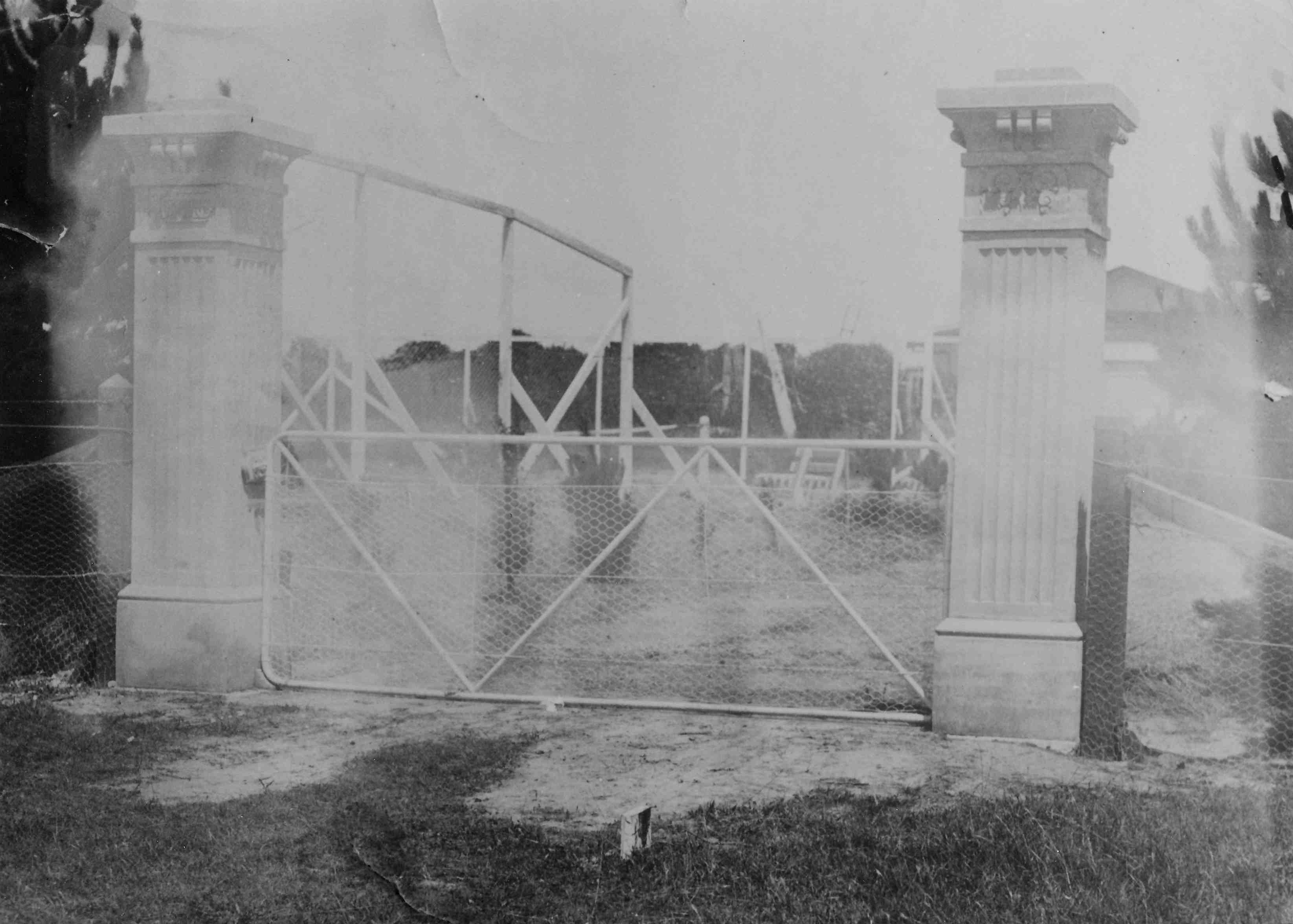 Merricks Beach. Construction of front pillars and tennis court gates at ‘Tusmore’.