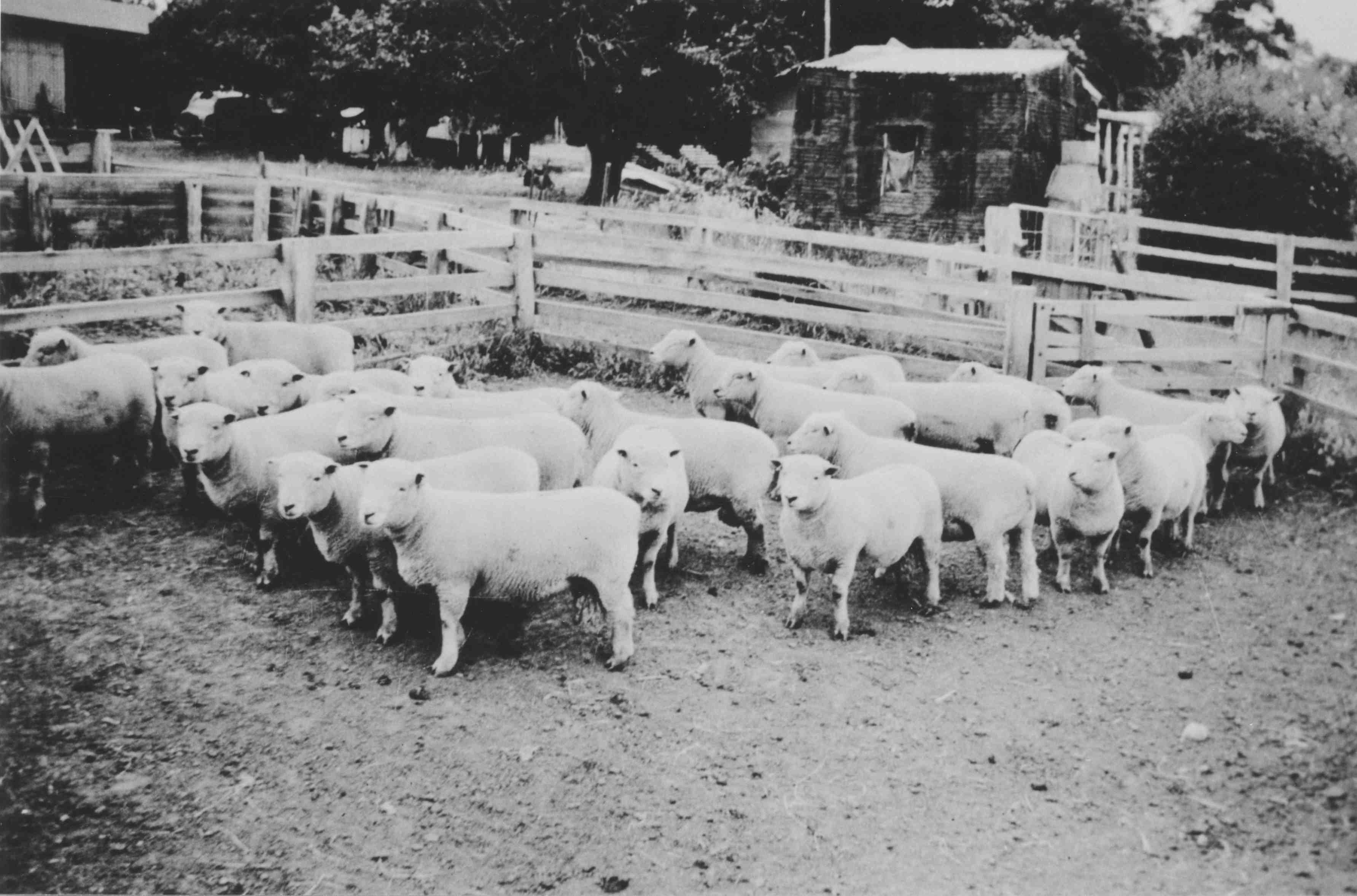 HISTORYMerricks c.1940. Sheepyard at Rundle’s property ‘Lulworth Park’ in Stanleys Road, Merricks.