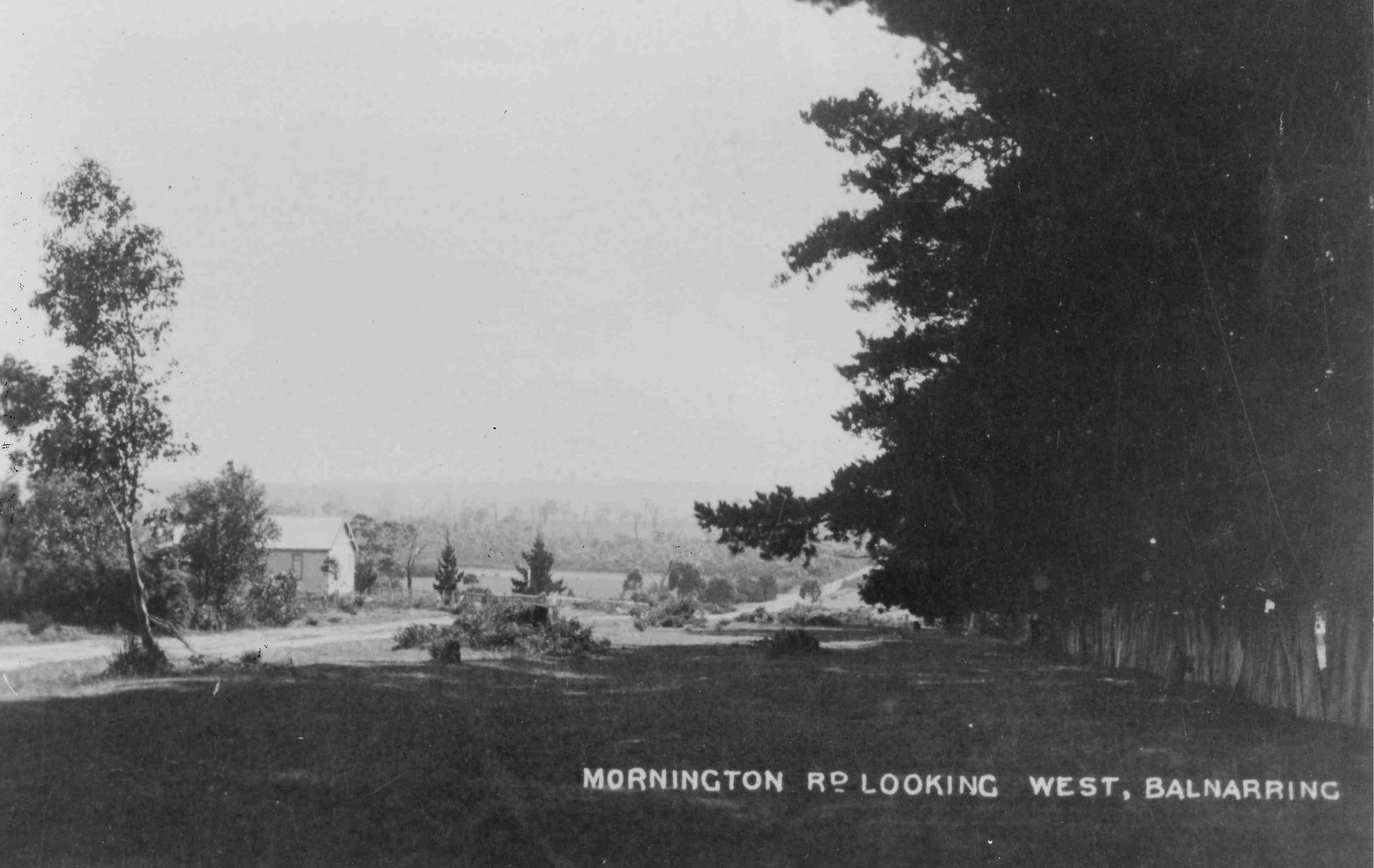 Balnarring Hall, 1910 from near Johonson St., a postcard.