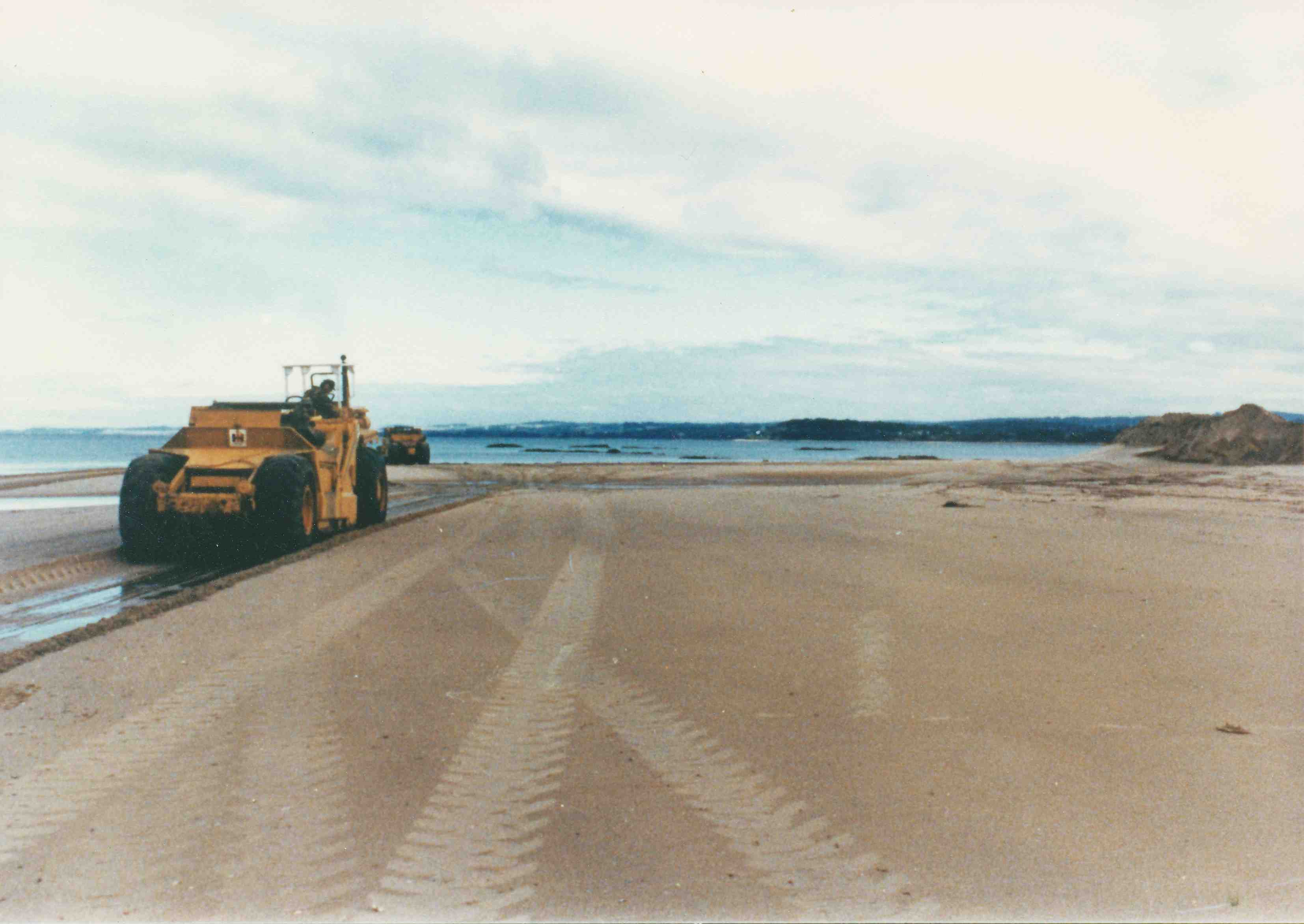 Somers (?1991). Dump truck moving sand at the mouth of Merricks Creek.