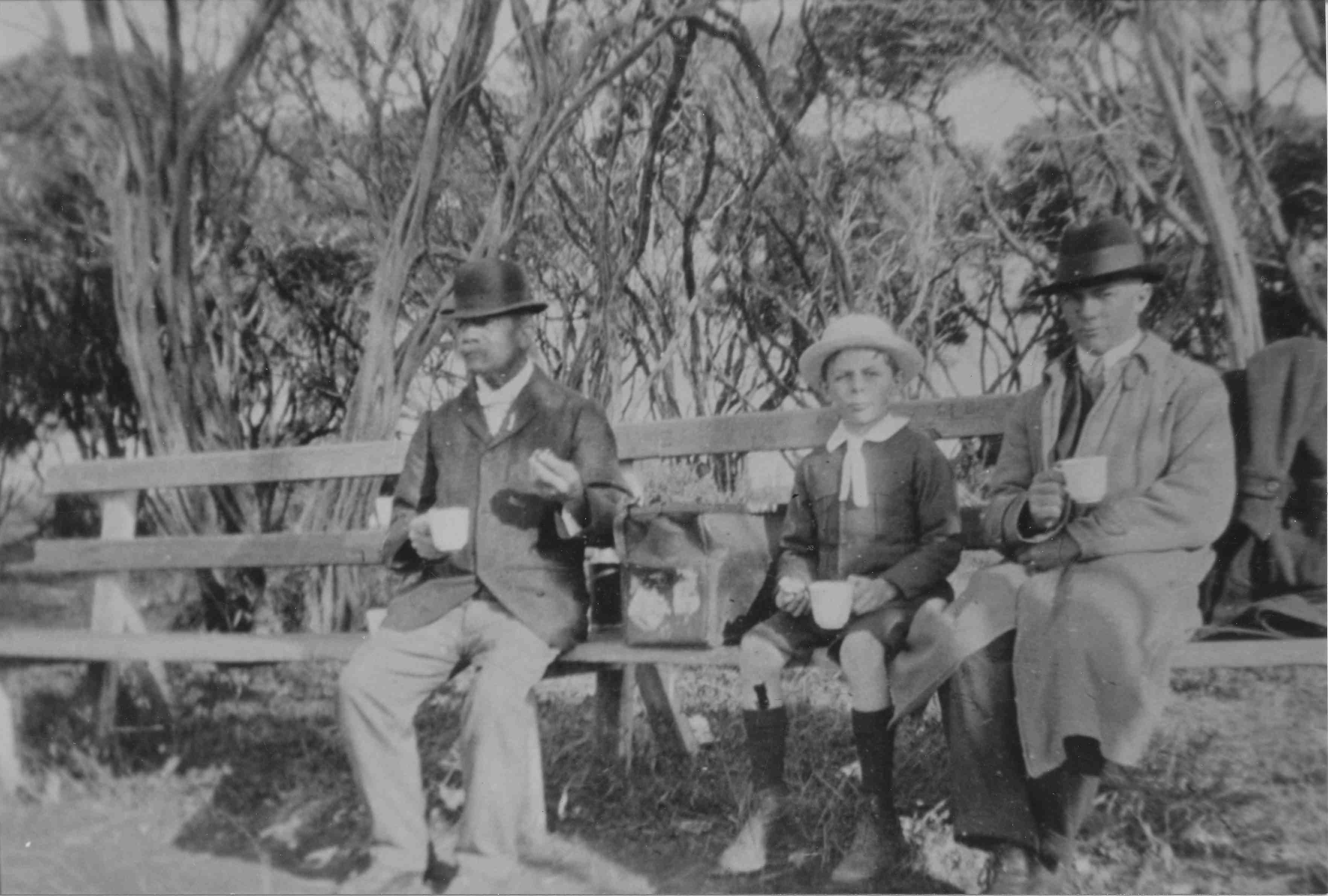 Bittern c.1917. William, Frank and John Myers at the top of the pier in Mornington.