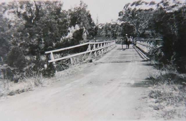 HISTORYBalnarring Beach, 1930. Bridge on Merricks Creek. The cart is possibly Stone’s.