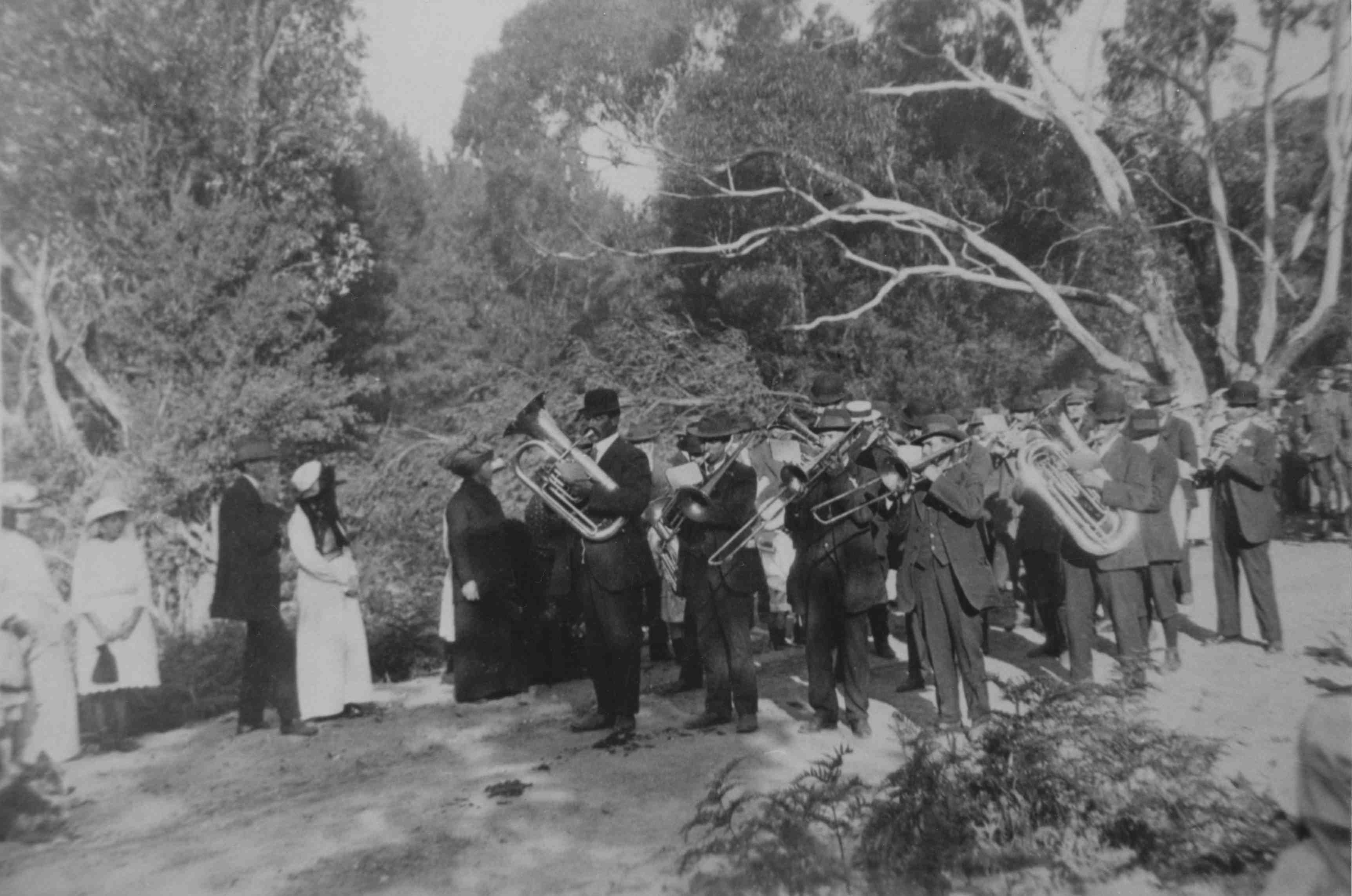 HISTORYBalnarring Beach c.1919. WW 1914-1918 Soldiers on Balnarring Beach at a Red Cross Picnic being entertained by a band. Cars were used to bring them to Tullum Beach. The event was initiated by the Balnarring Progress Association. Balnarring Beach,