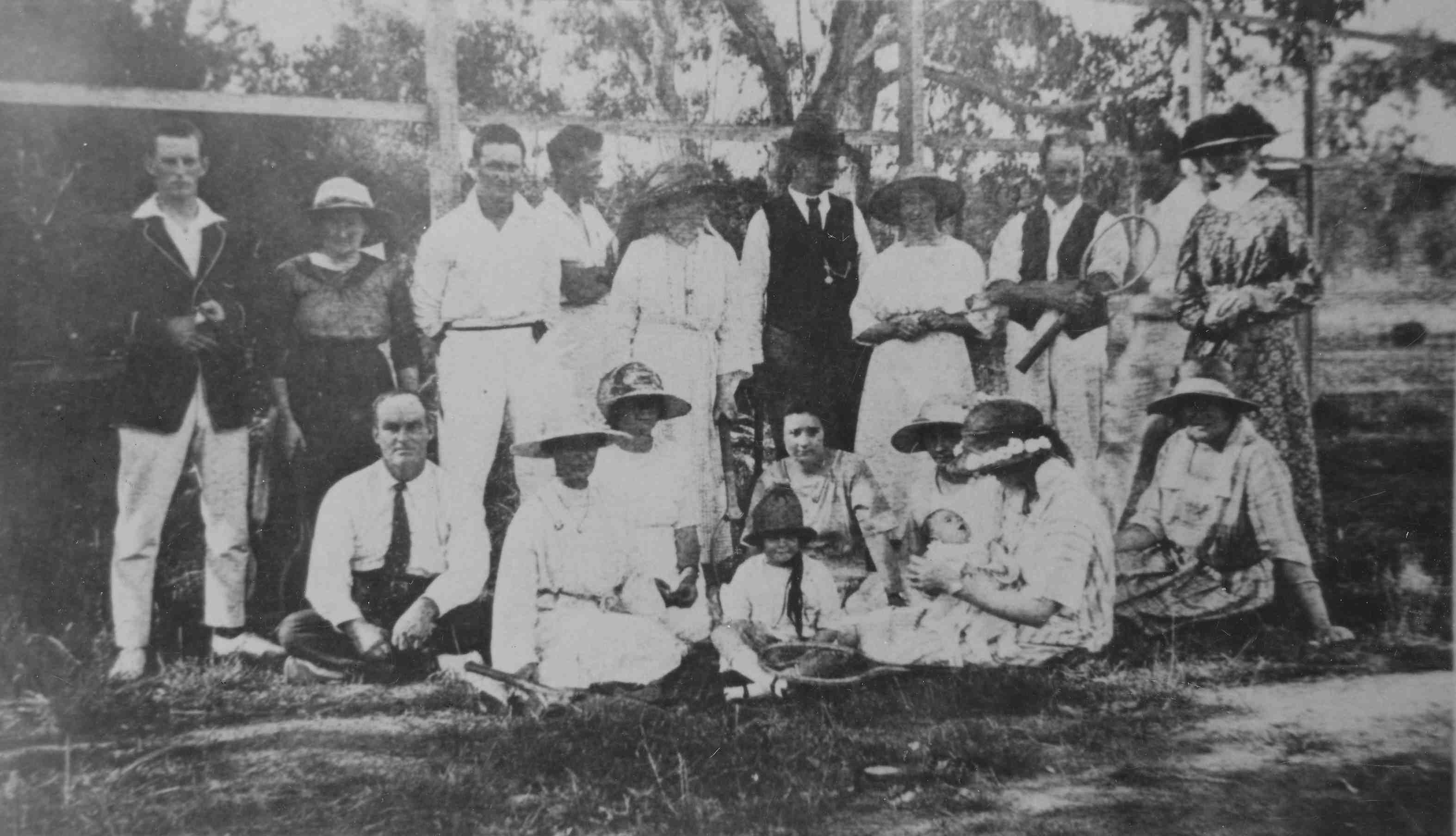HISTORYBalnarring c.1925. Ballnarring Tennis Club players. Ron Stone, V. Davies, Leigh Mairs, Dave Buckley, Mrs Johnson, Les Cole, Miss Beachey (teacher), Molly ?, Gertrude Stone.