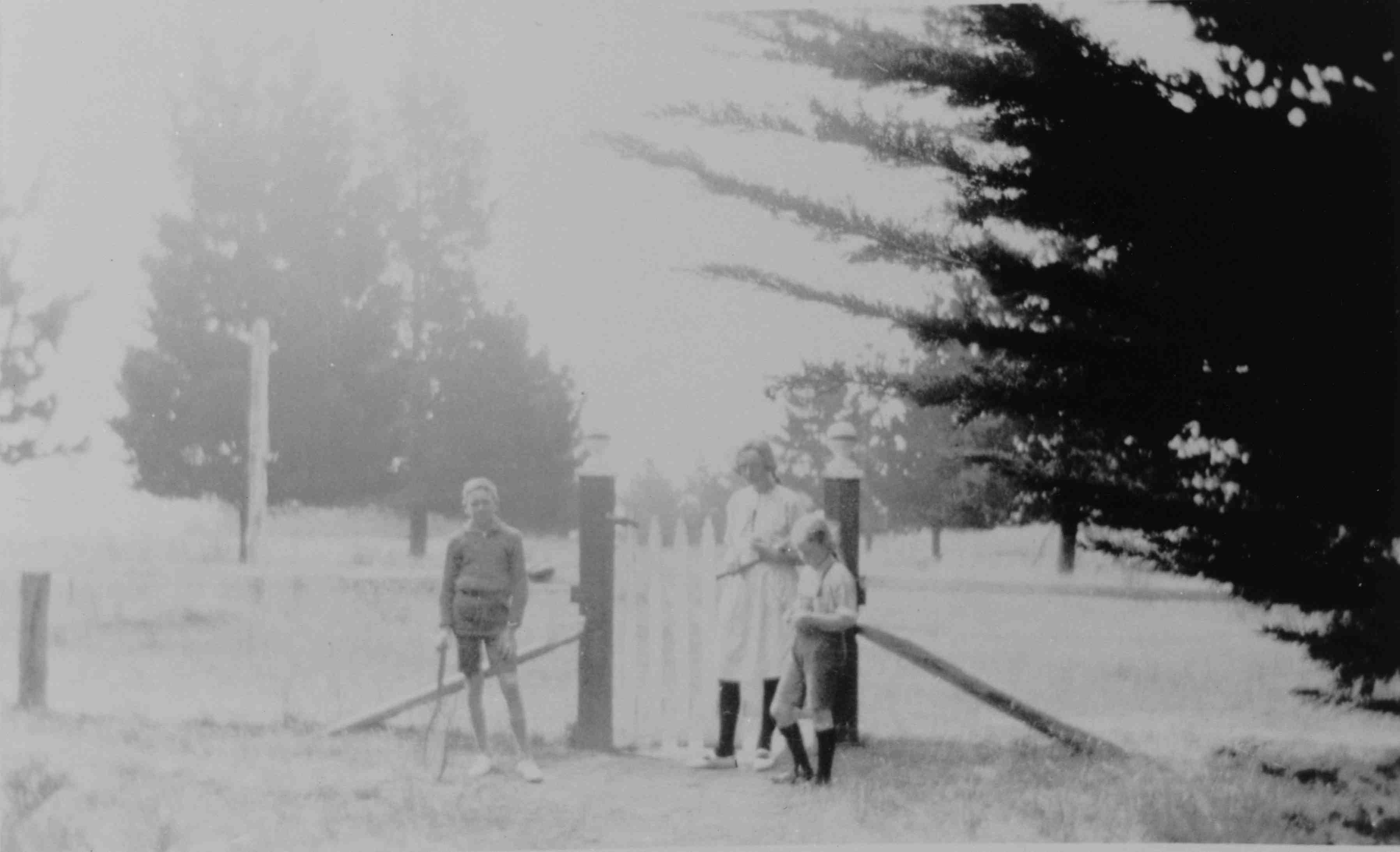 Merricks, no date. Three children at the front gate of ‘Larnoo’.
