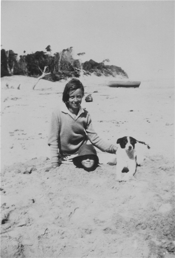 Merricks, no date. On Merricks Beach: Lois and Norma.