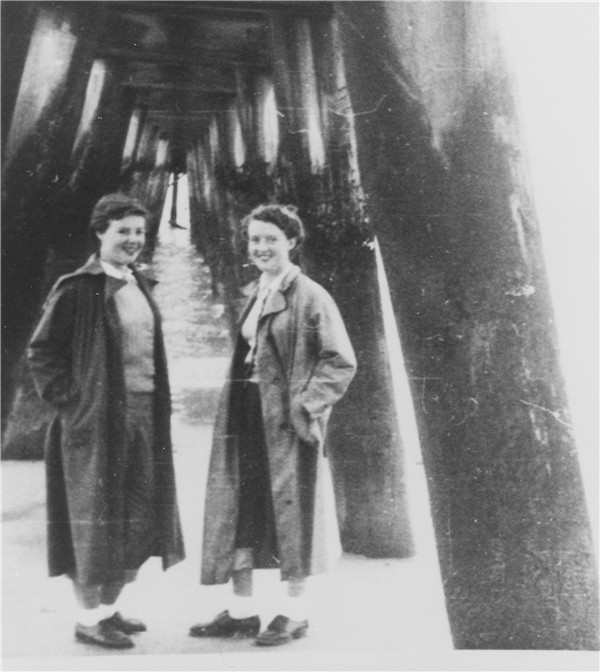 HISTORYSomers 1954. Janice Hall and Elizabeth Hansell standing under the (disused) sewage pipeline which ran into Westernport Bay from the RAAF Camp.
