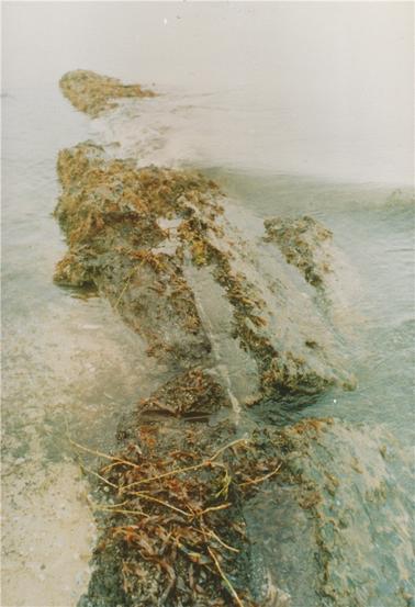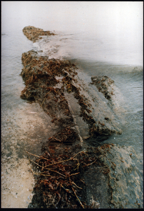 HISTORYSomers, 1991. Remnants of a shipwreck on the beach.