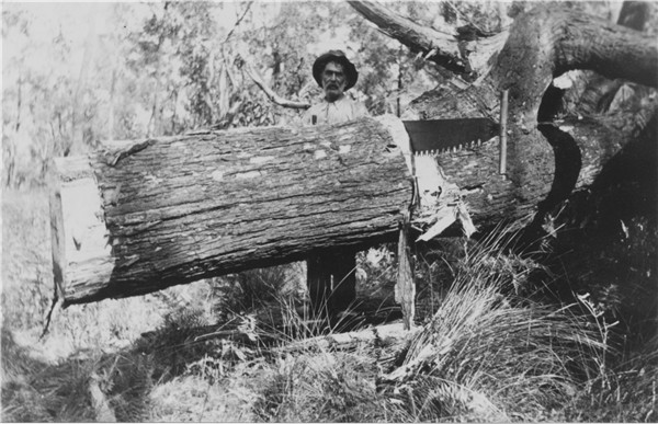 HISTORYMerricks North 1938. Jack Johnson cutting a tree for split posts.