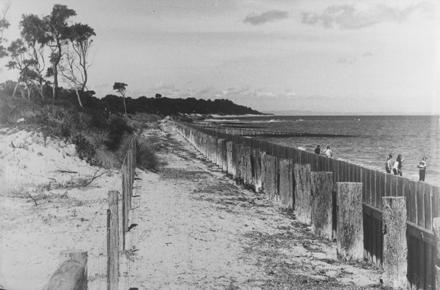HISTORYSomers 1985. Sea wall as a wave buffer at Education Camp. Severe erosion caused by storms during the 1970s led to the construction of a sea wall during the 1980s.