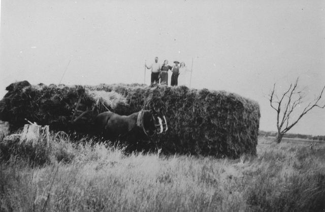 Somers 1936. The Bodle family moving hay on their property ‘Korbanui’ in Sandy Point Road.