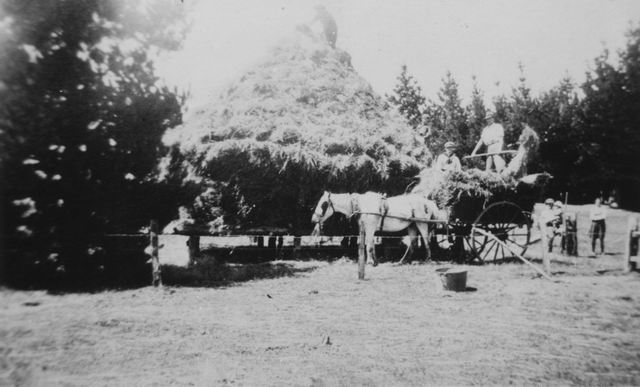 Merricks c.1919. Joyner family making hay.