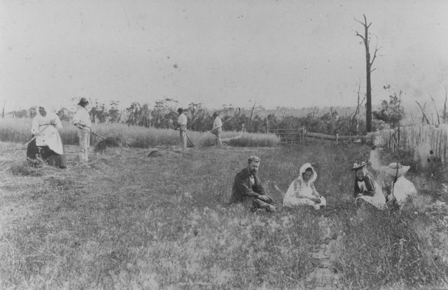 Merricks North 1890s. Newstead: hay cutting work and rest.